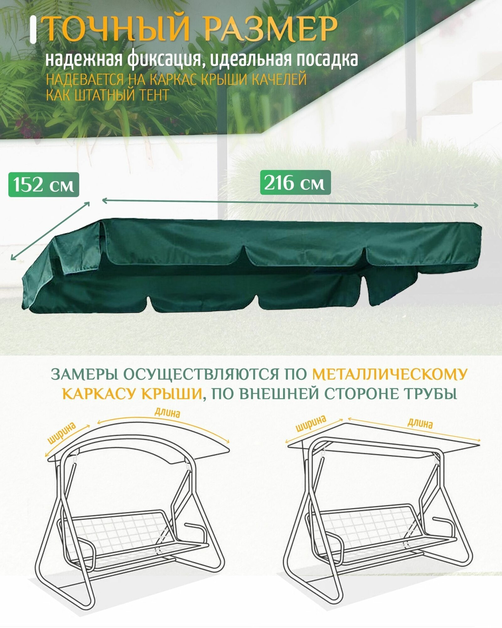 Тент для садовых качелей Нирвана (263х174 см) зеленый, навес садовый, укрытие для качелей, тент крыша