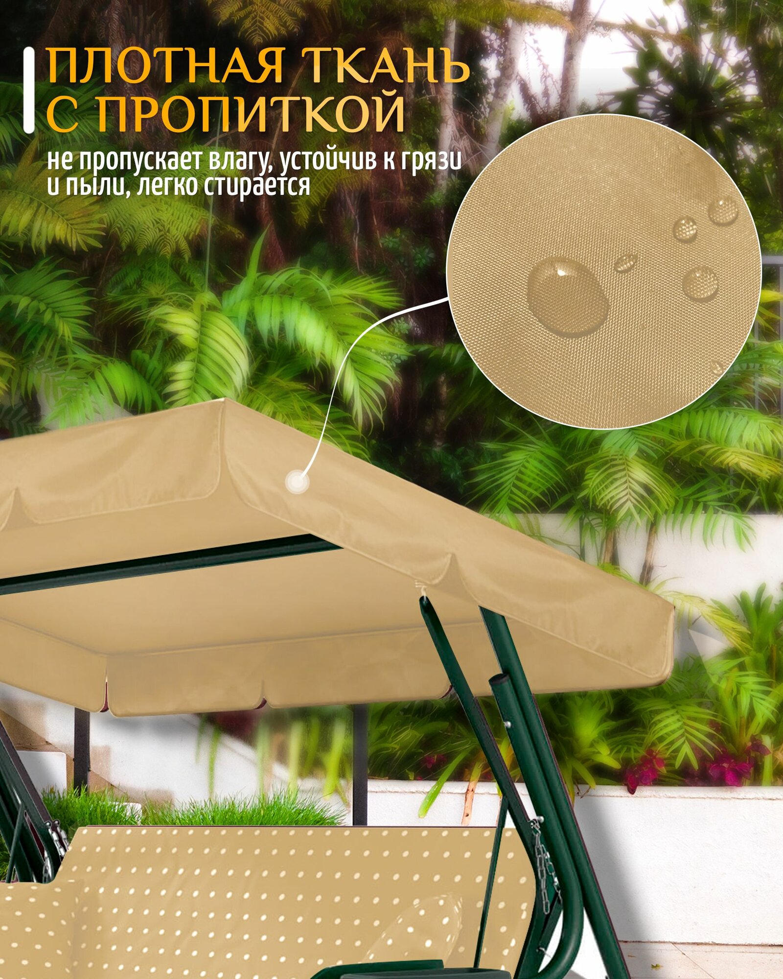| Дополнительная информация | Тент - крыша для садовых качелей из уплотненной ткани Оксфорд 240D |