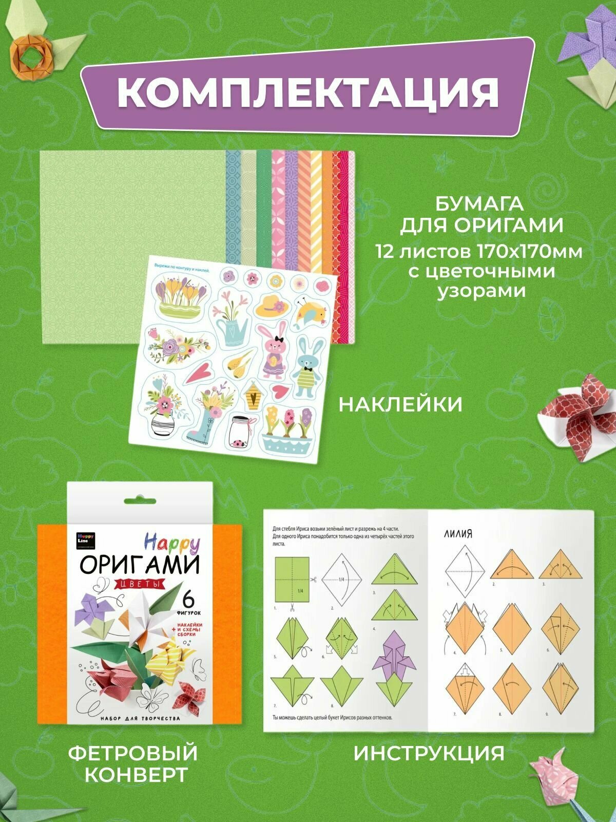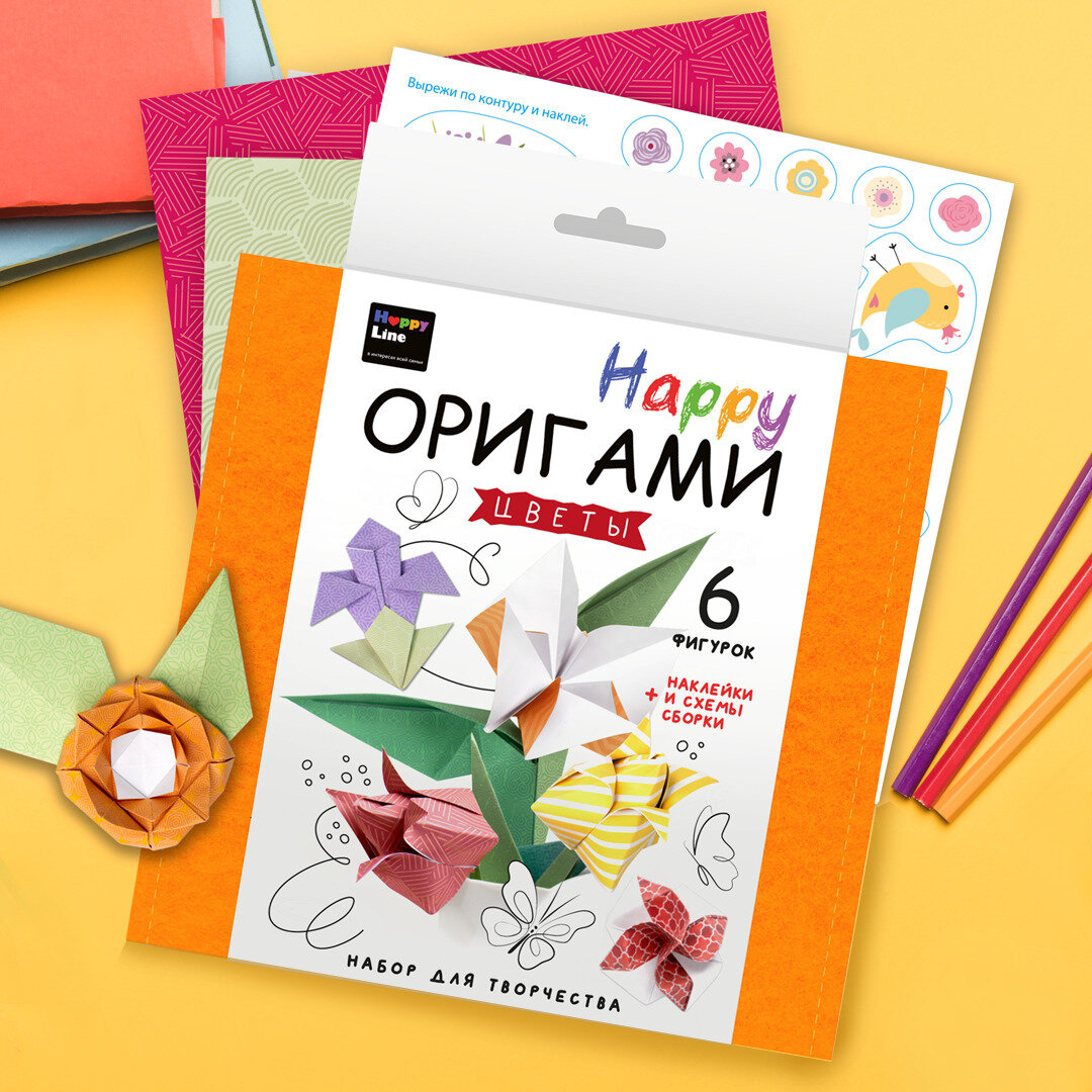 Купить Набор оригами для детей HappyLine "Цветы", подарок детям на новый год