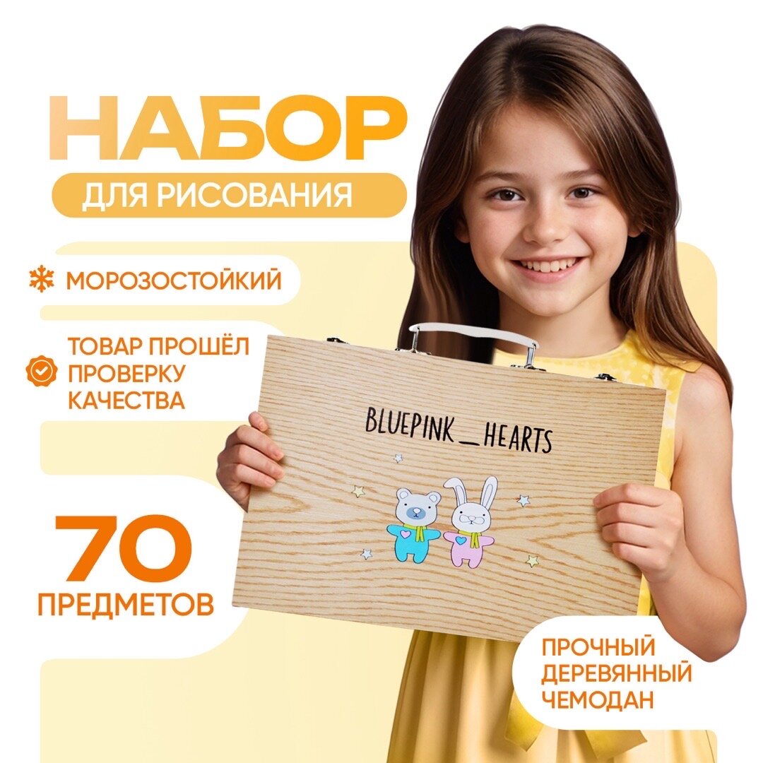 Купить Набор для рисования и творчества из дерева BluePink Hearts, 70 предметов