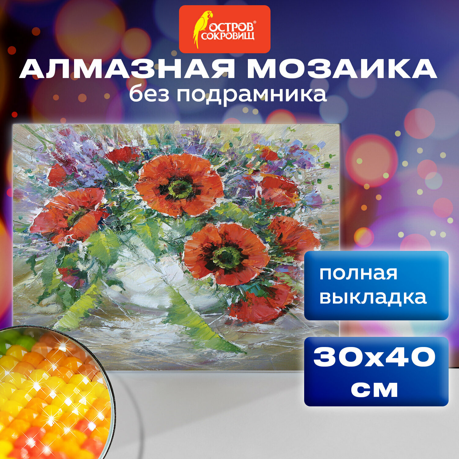 Купить Картина стразами (алмазная мозаика) 30х40 см, остров сокровищ "Букет маков", без подрамника, 662572
