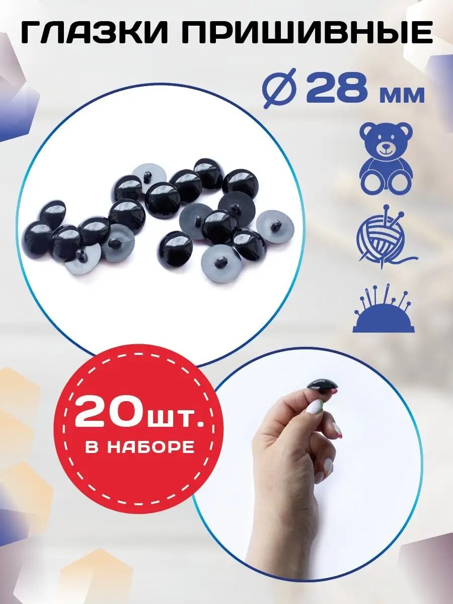 | Комплектация | Пластиковые пришивные глазки черного цвета - 20 шт. |