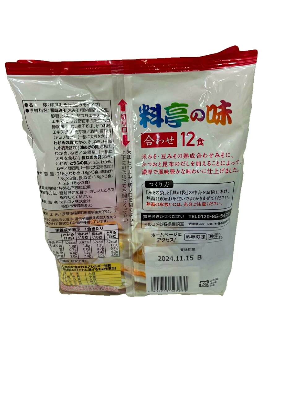 | Состав | рисовое мисо, соль, экстракт краба, экстракт морского гребешка, сахар, порошок из панцирей крабов, ароматизатор, водоросли вакаме, экстракттунца, сахар, белок, глутамат натрия рисовое мисо, соль, экстракт тунца, экстракт морского леща, сахар, экстракт карей, ароматизатор, водоросли вакаме, белок, глутамат натрия рисовое мисо, соль, экстракт тунца, вакаме, сахар, водоросли аоса, ароматизатор, водоросли вакаме, сахар, белок, глутамат натрия |
