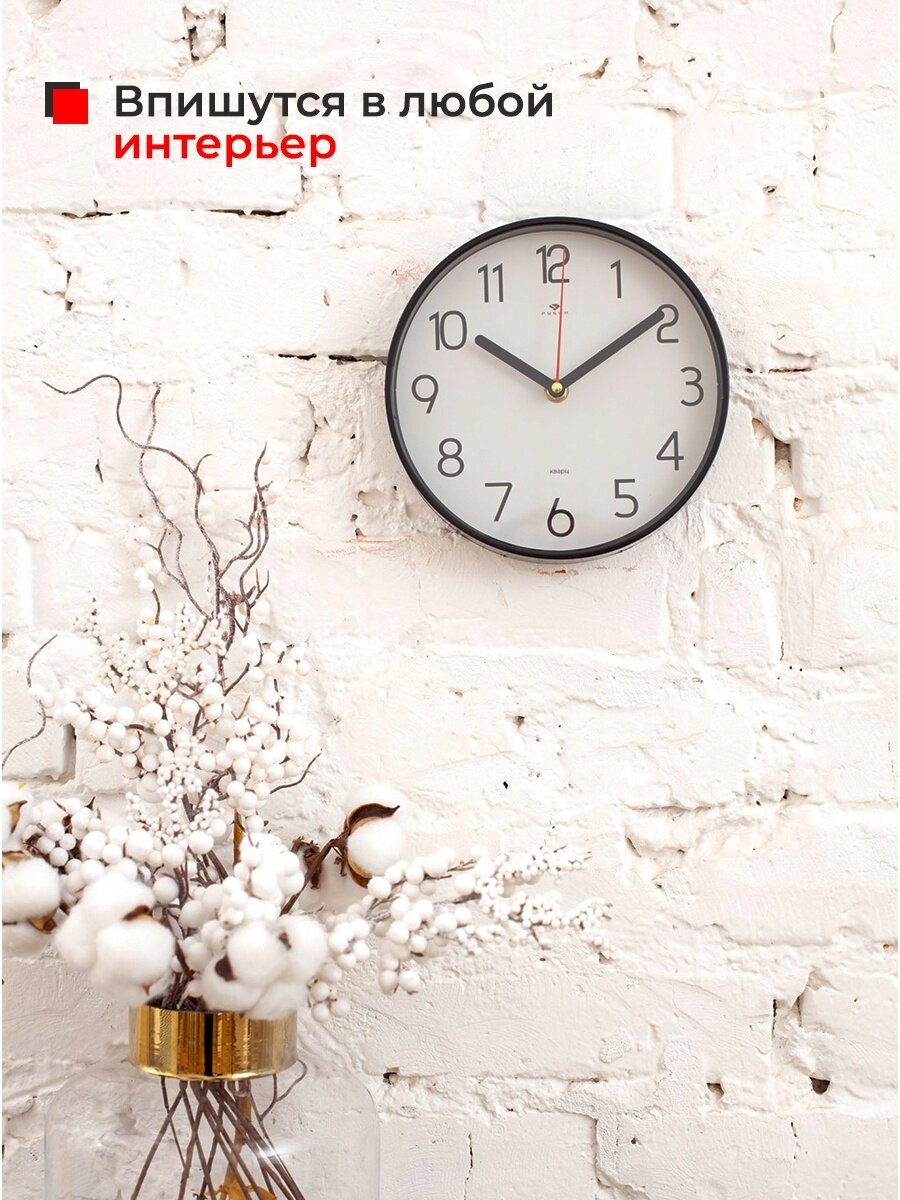 Часы настенные классические Рубин 19,5 см бесшумные с плавным ходом в комнату круглые