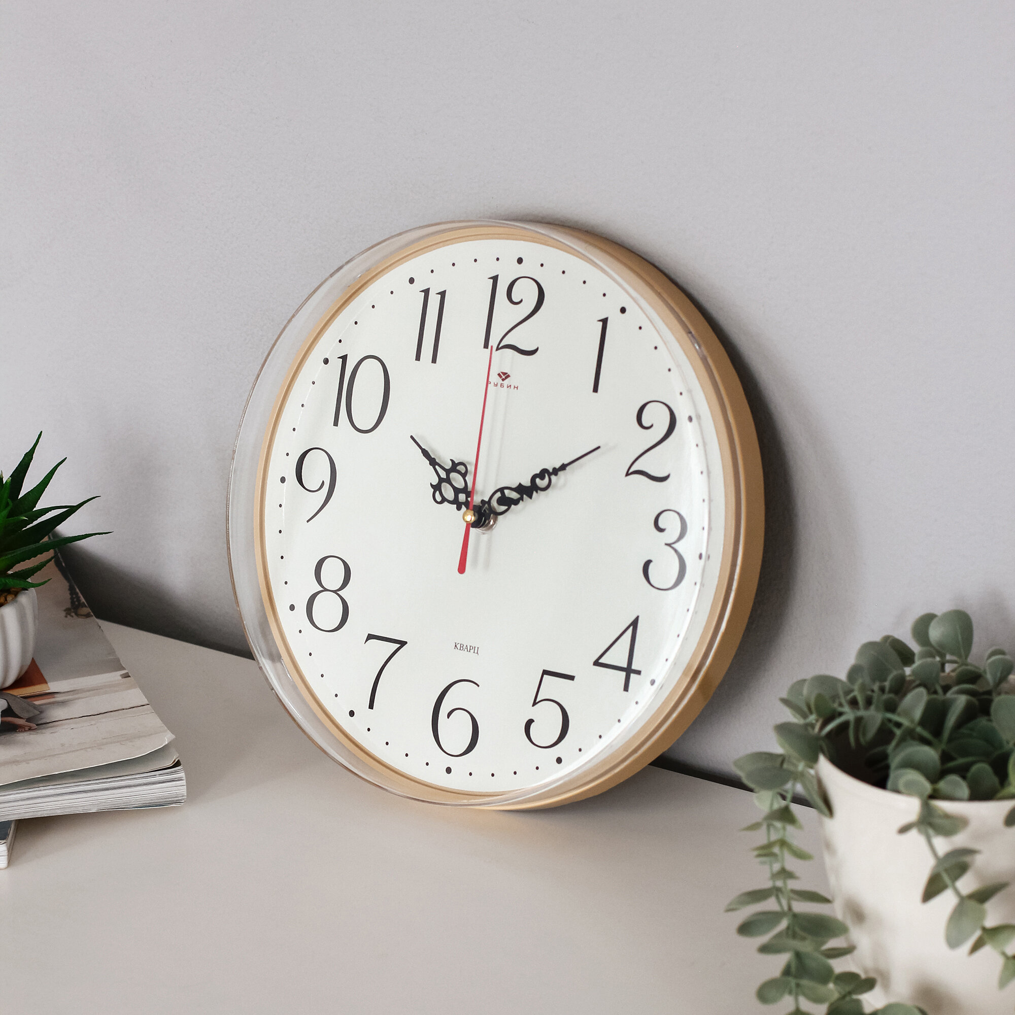 Часы настенные бесшумные Рубин, d 29 см кварцевые, плавный ход, пластик