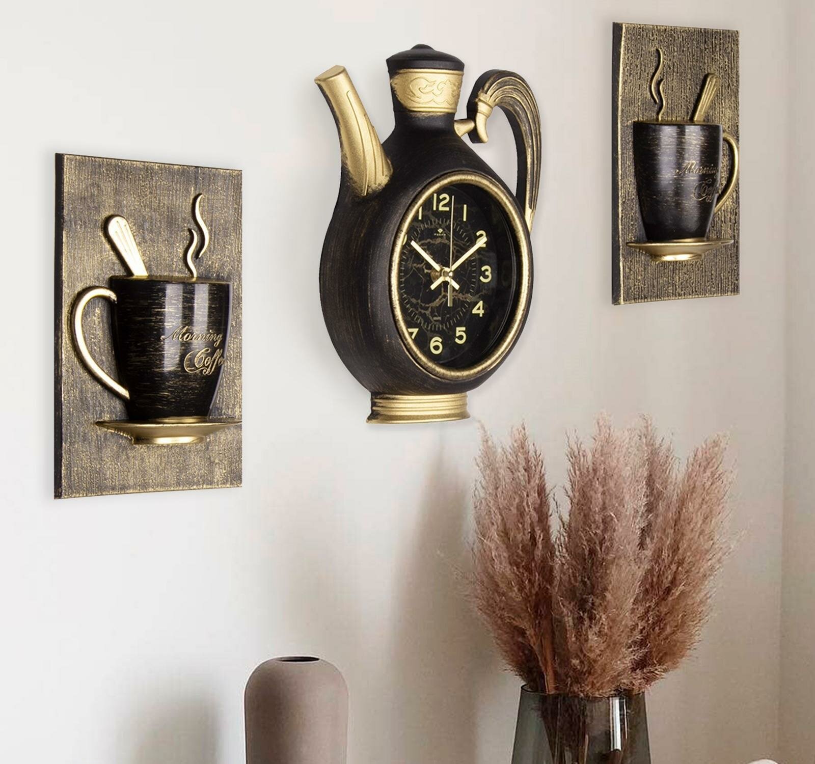 СохранитьЧасы настенные , модульные , кухня , бесшумные ,"Чайник с двумя чашками", "Рубин", цвет черный с золотом интересное: