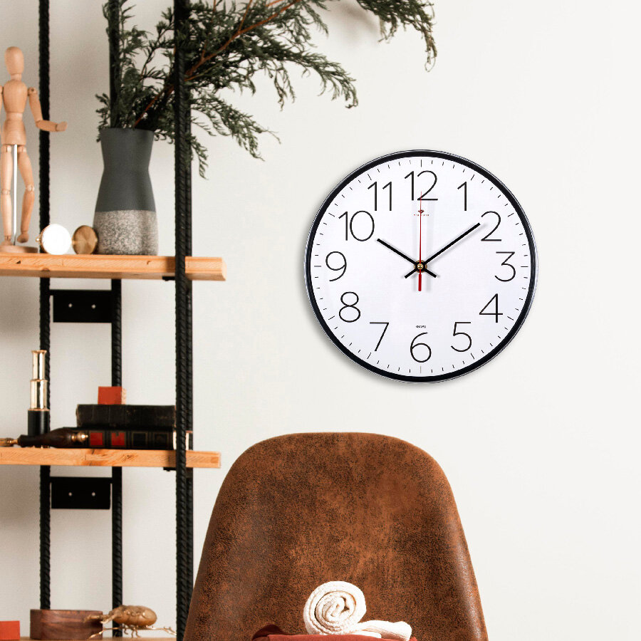 Стильные кварцевые часы в круглом корпусе Рубин Классика 3524-007 35 см с большими арабскими цифрами для украшения интерьера гостиной, спальни, кухни или офиса