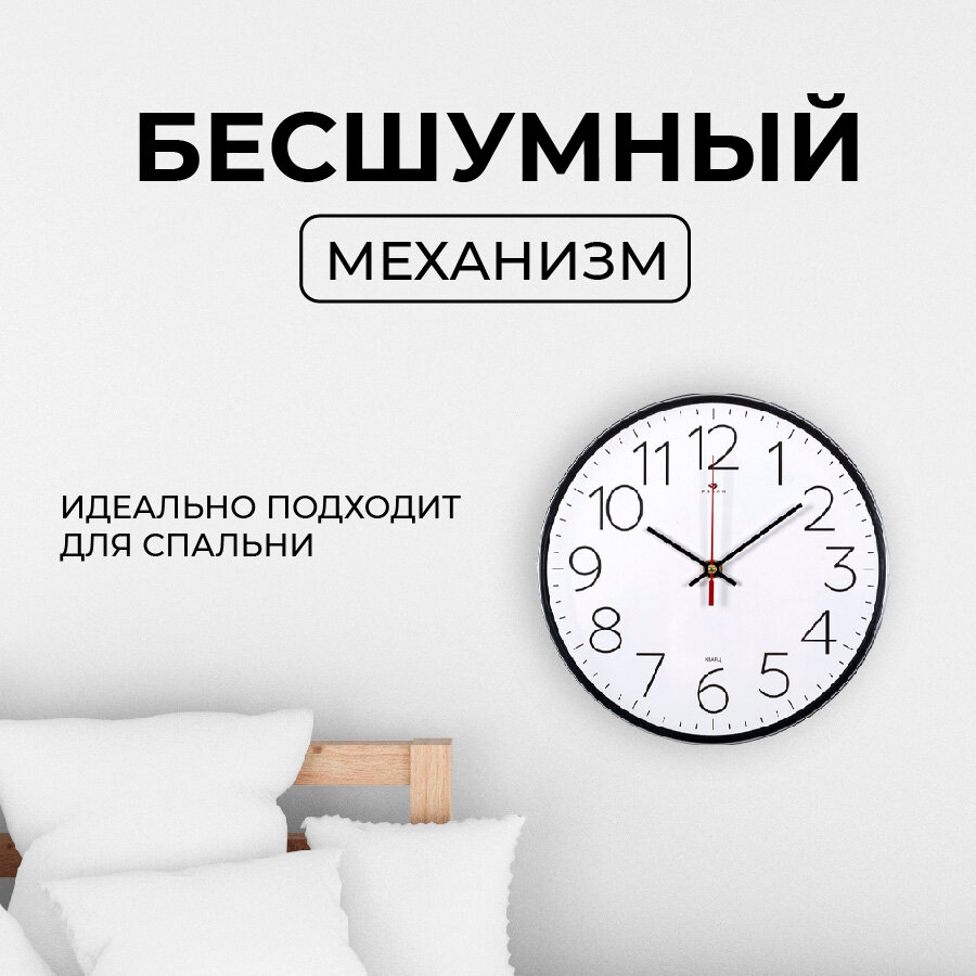 Часы настенные бесшумные Рубин, d 29 см кварцевые, плавный ход, пластик
