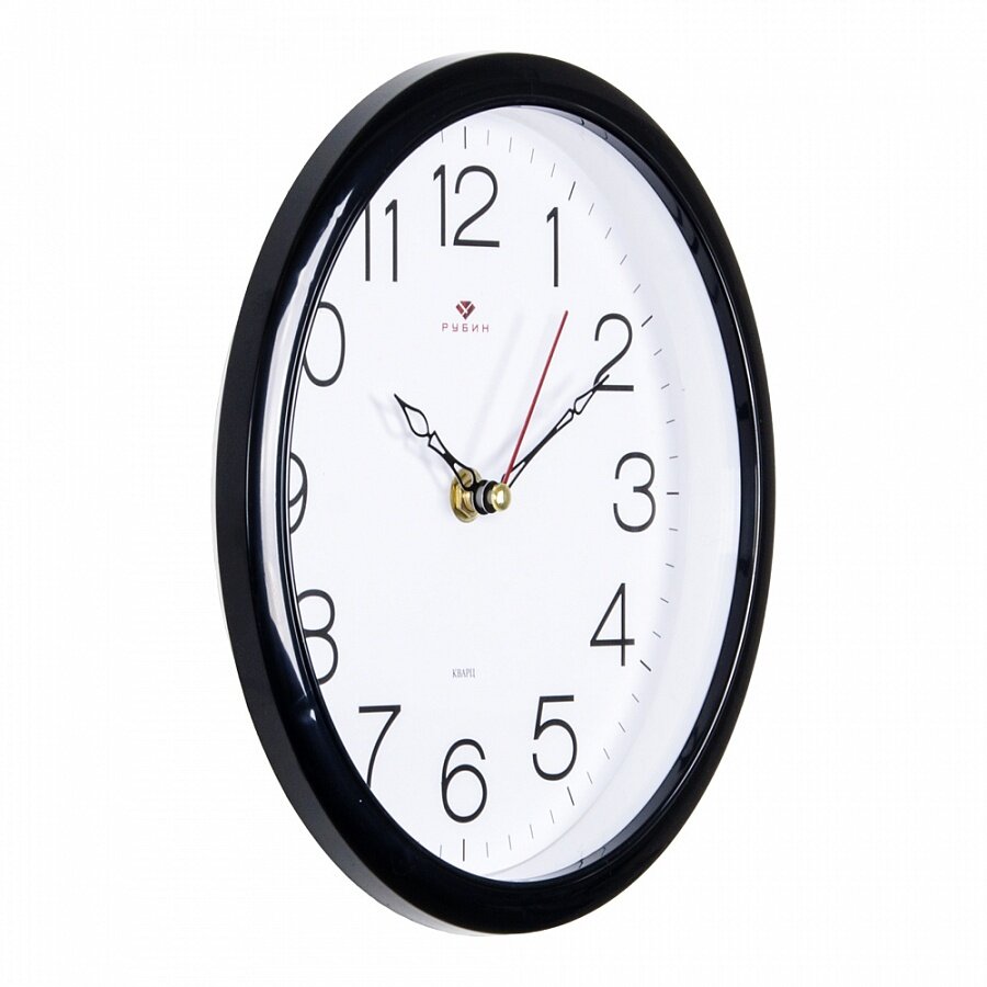Часы настенные Рубин круглые бесшумные 32см черные кварцевые