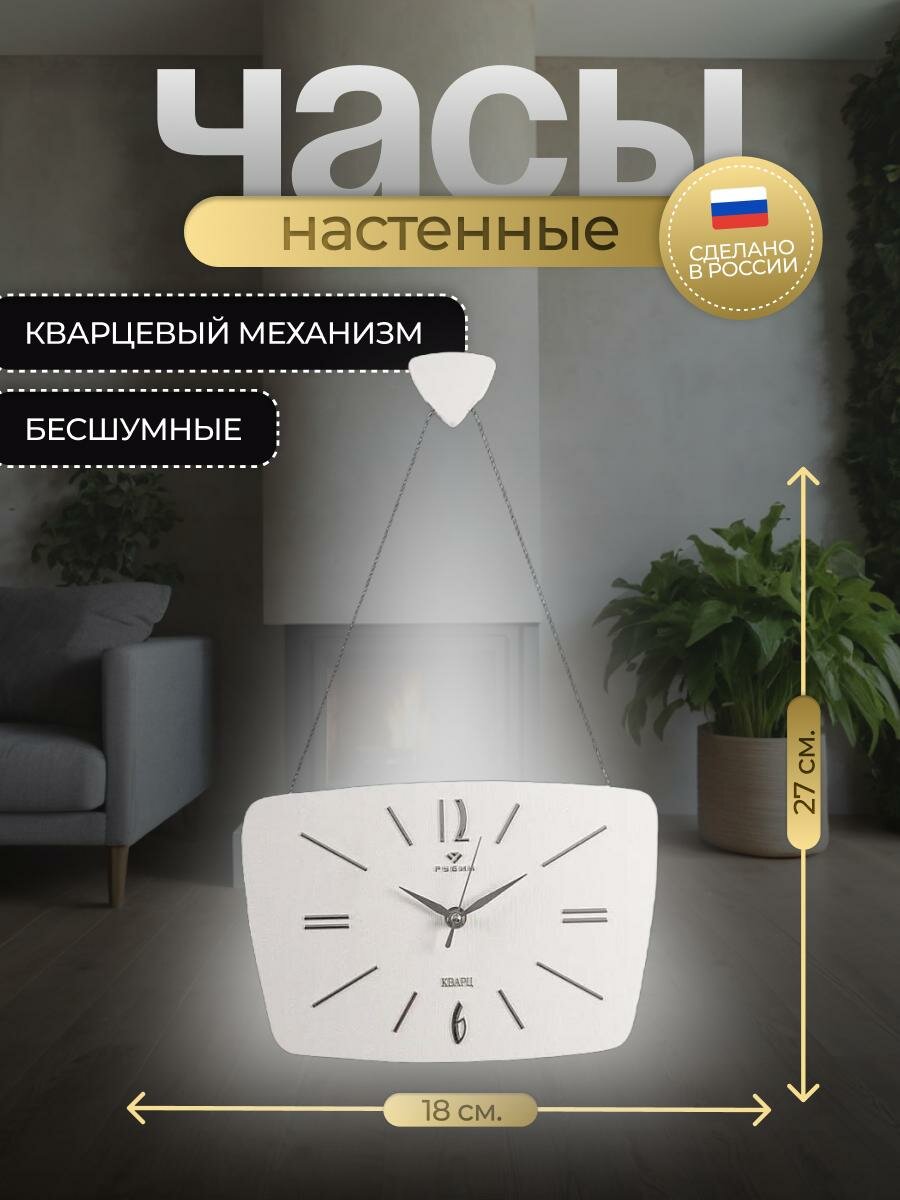 Часы настенные Рубин 2618-003, кварцевые, с плавным ходом, белые, фигурные на подвесе