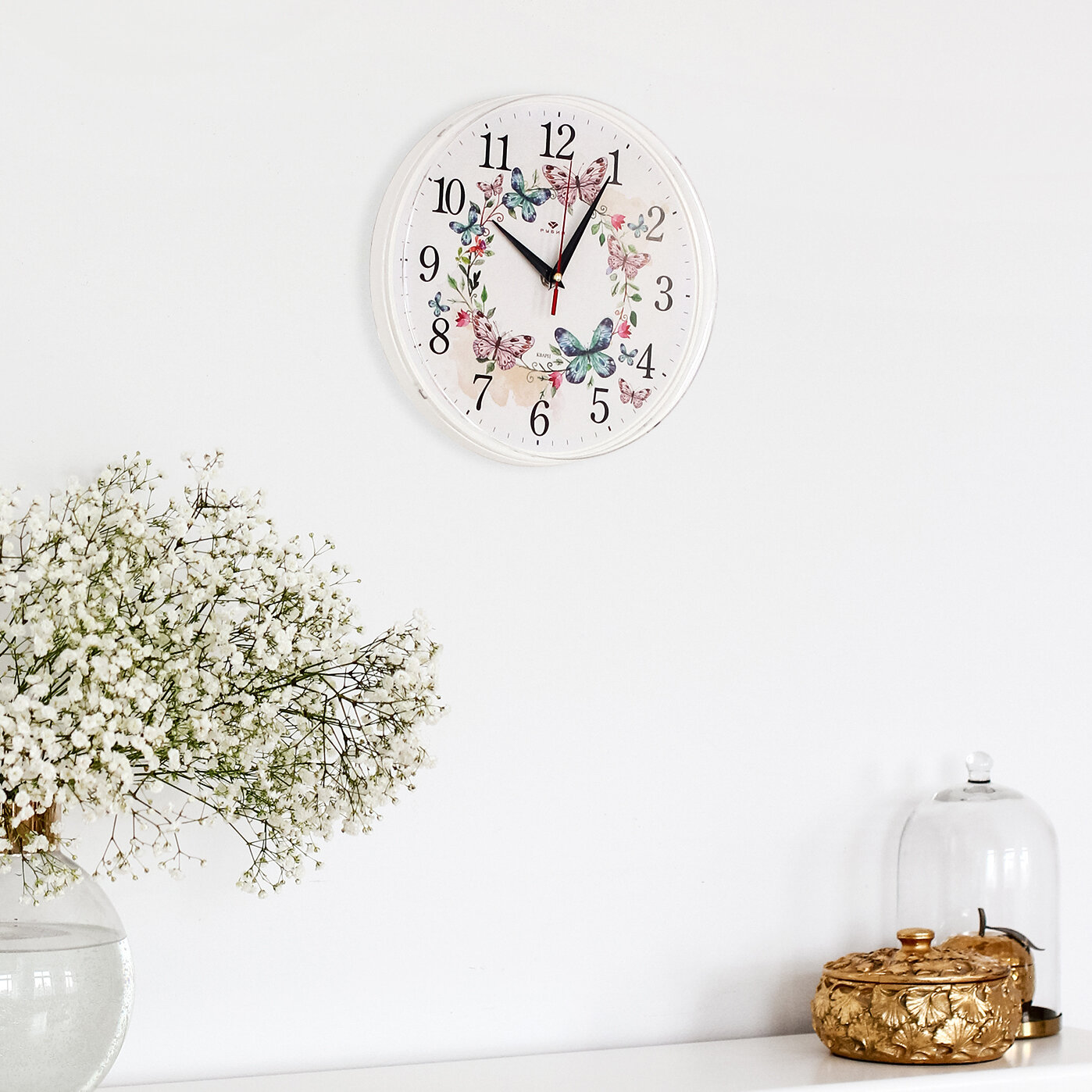 Настенные часы "Венок из бабочек", диаметр 25см, бежевое основание, плавный ход