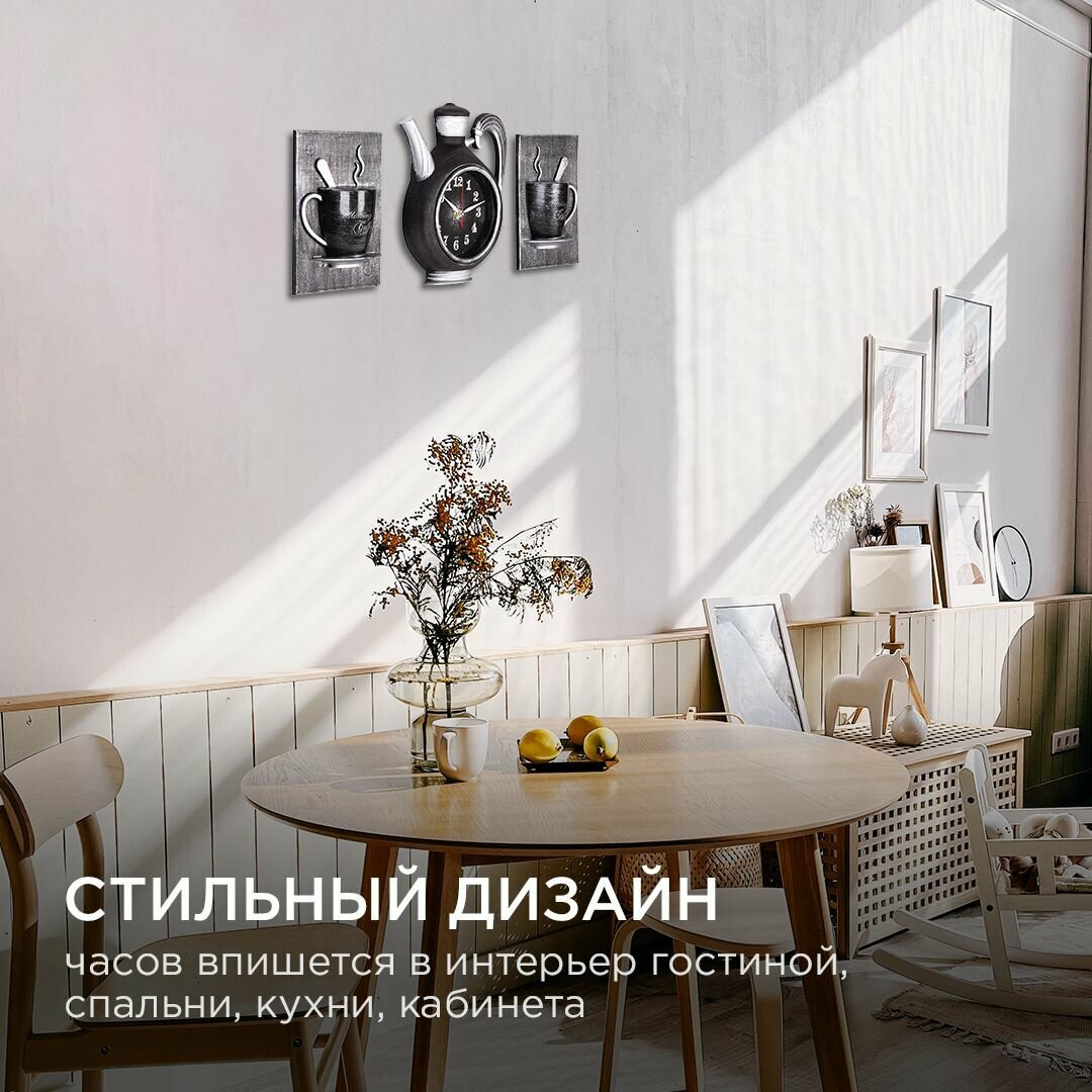 Часы настенные интерьерные для кухни "Чаепитие", бесшумные, чайник 26.5 х 24 см, серые, АА