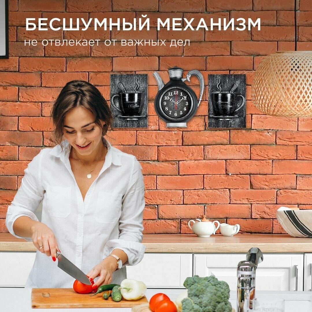 Часы настенные интерьерные для кухни "Сангино", бесшумные, 26.5 х 24 см, черное серебро, АА