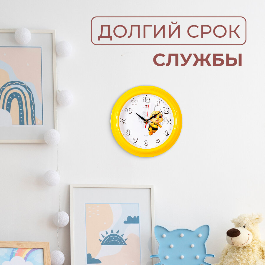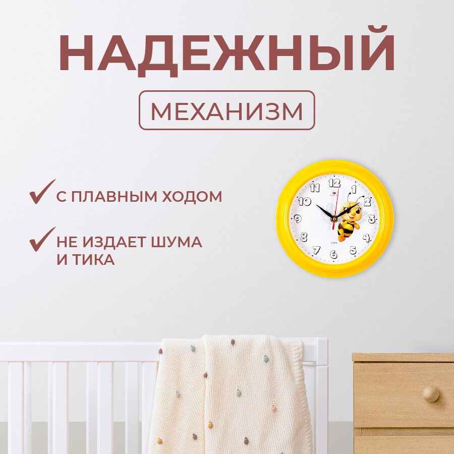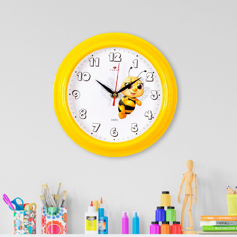 Часы настенные, интерьерные, детские, "Пчелка", d-21 см, бесшумные