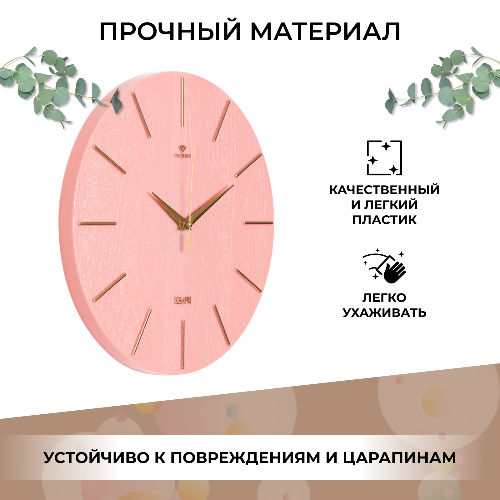 Настенные часы Рубин 2832-002, кварцевые, материал корпуса пластик, плавный ход