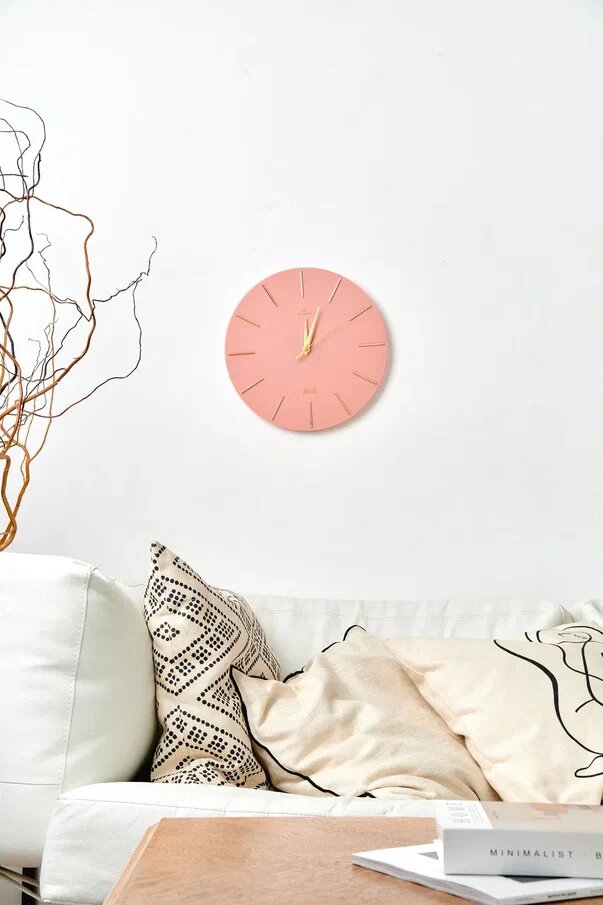 СохранитьБесшумные настенные круглые часы 30 см диаметр, кварцевые часы Рубин без стекла, Коралловый + Золото интересное: