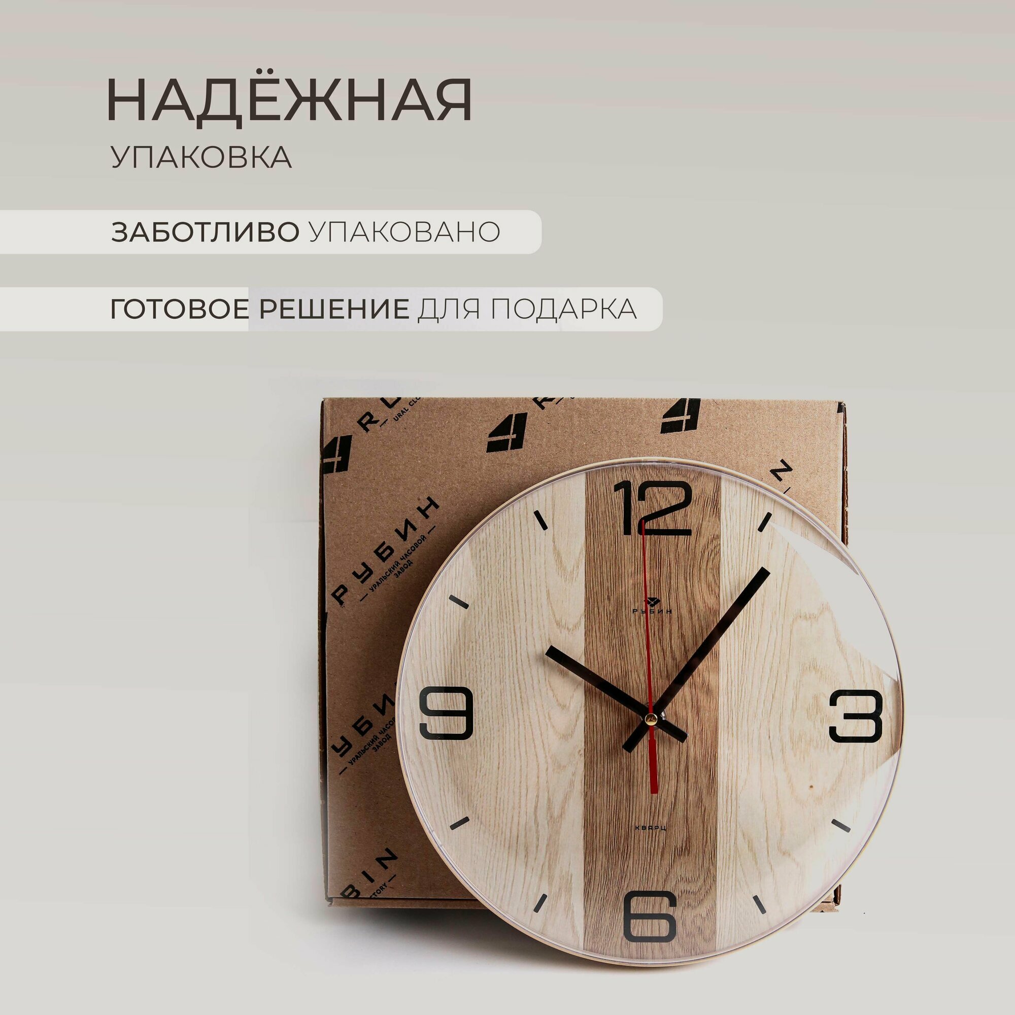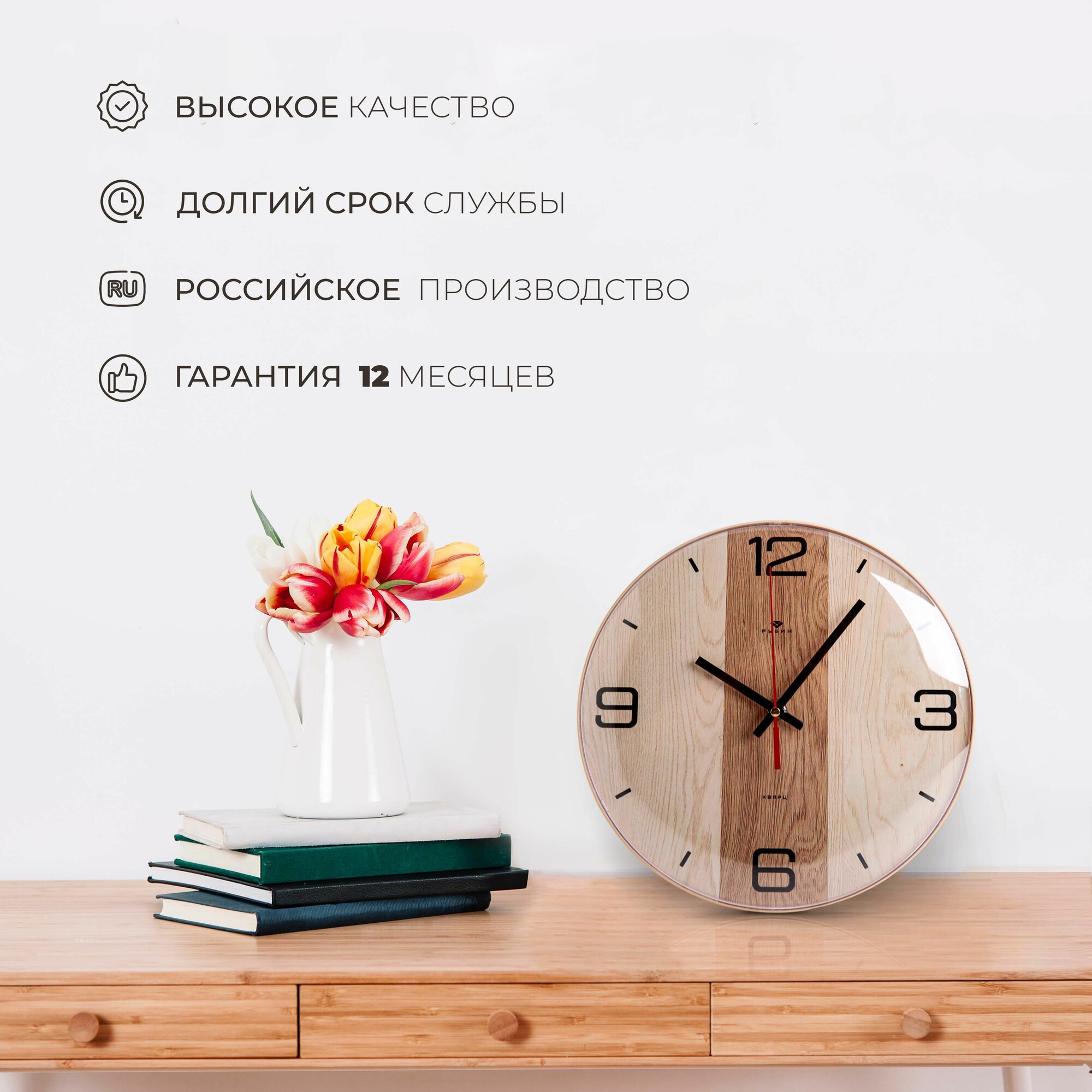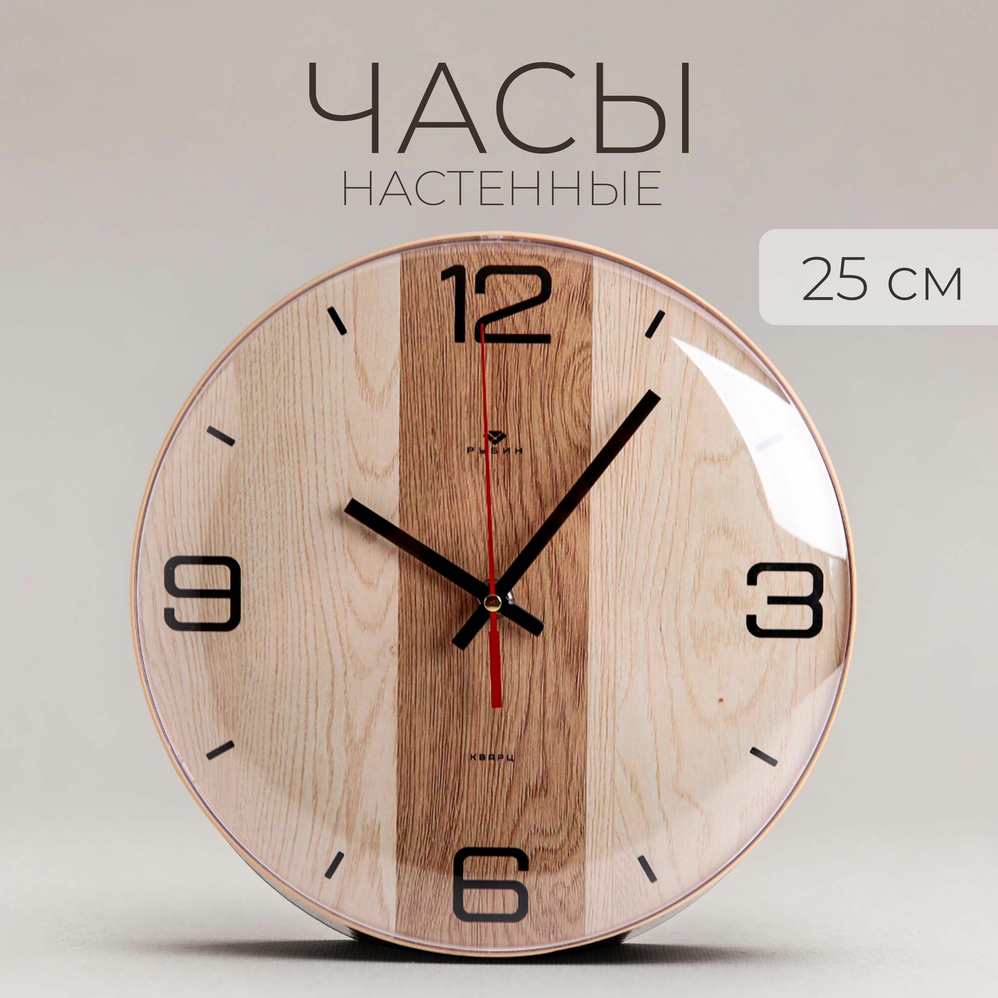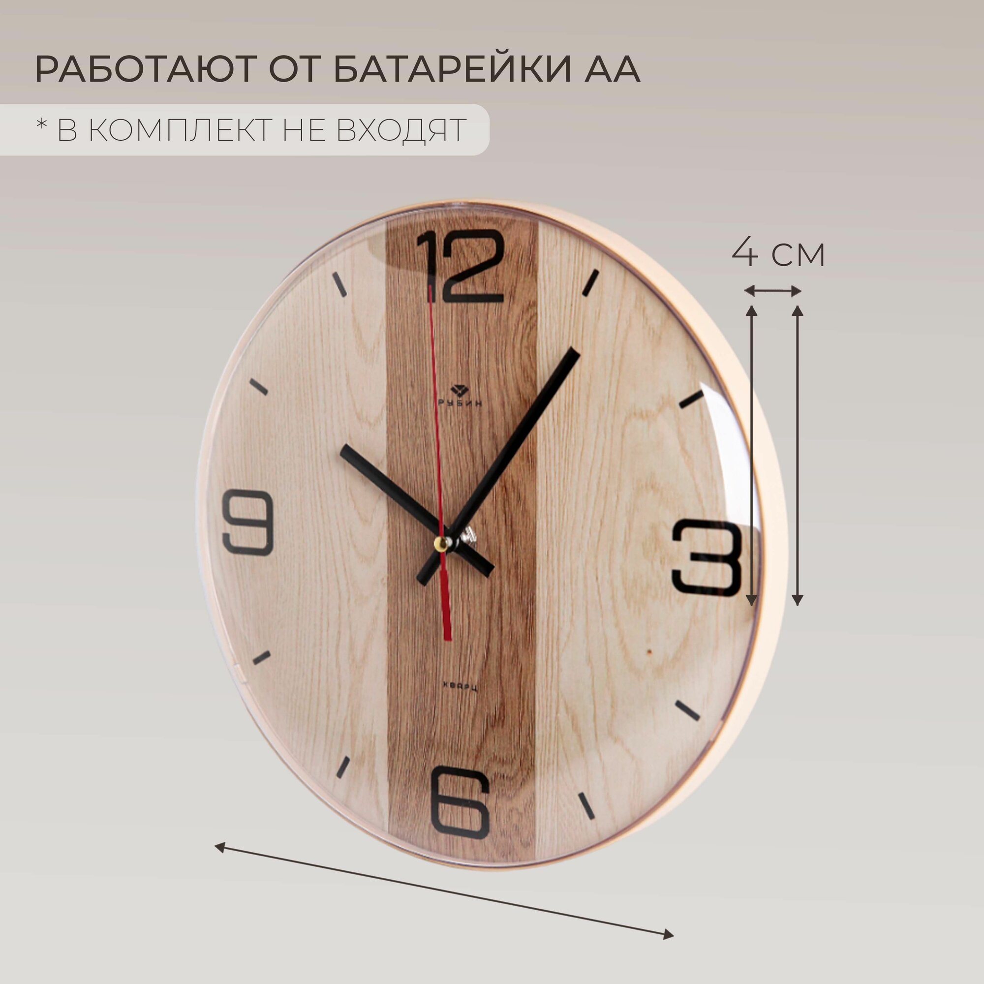Часы настенные интерьерные "Рубин" круг d=25см, основание бежевое "Текстура дерева", кварцевый механизм