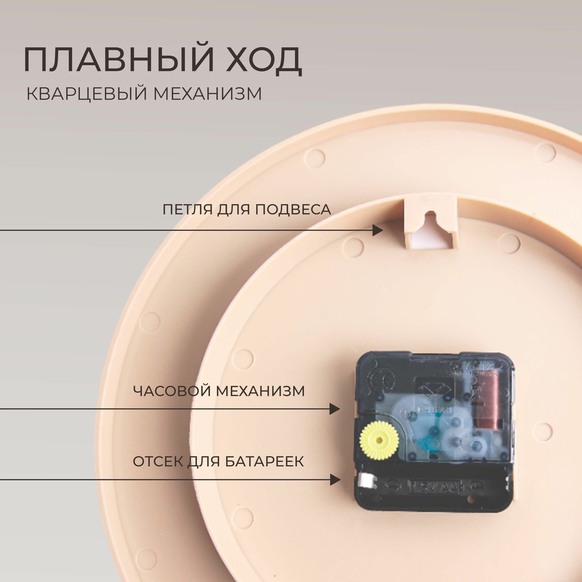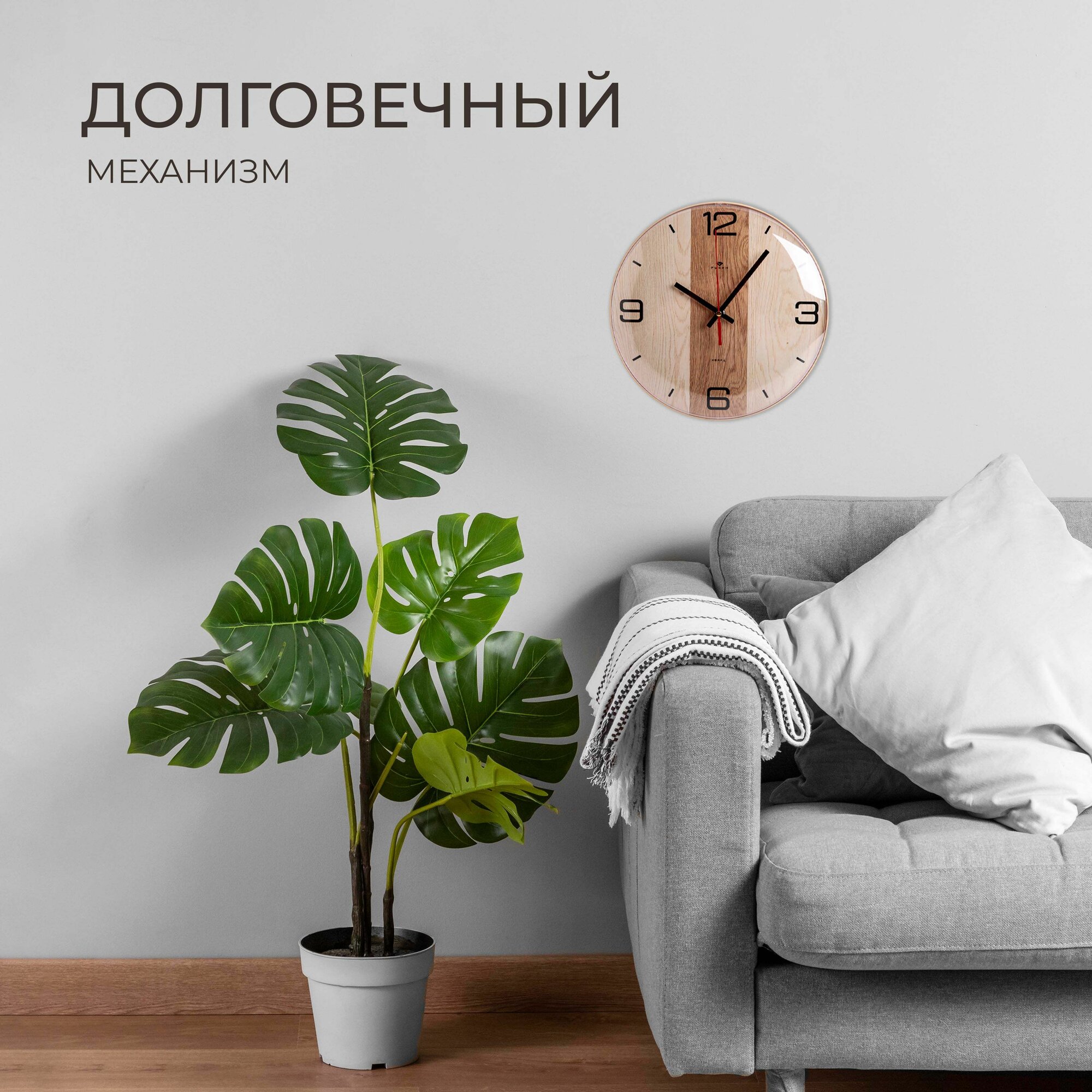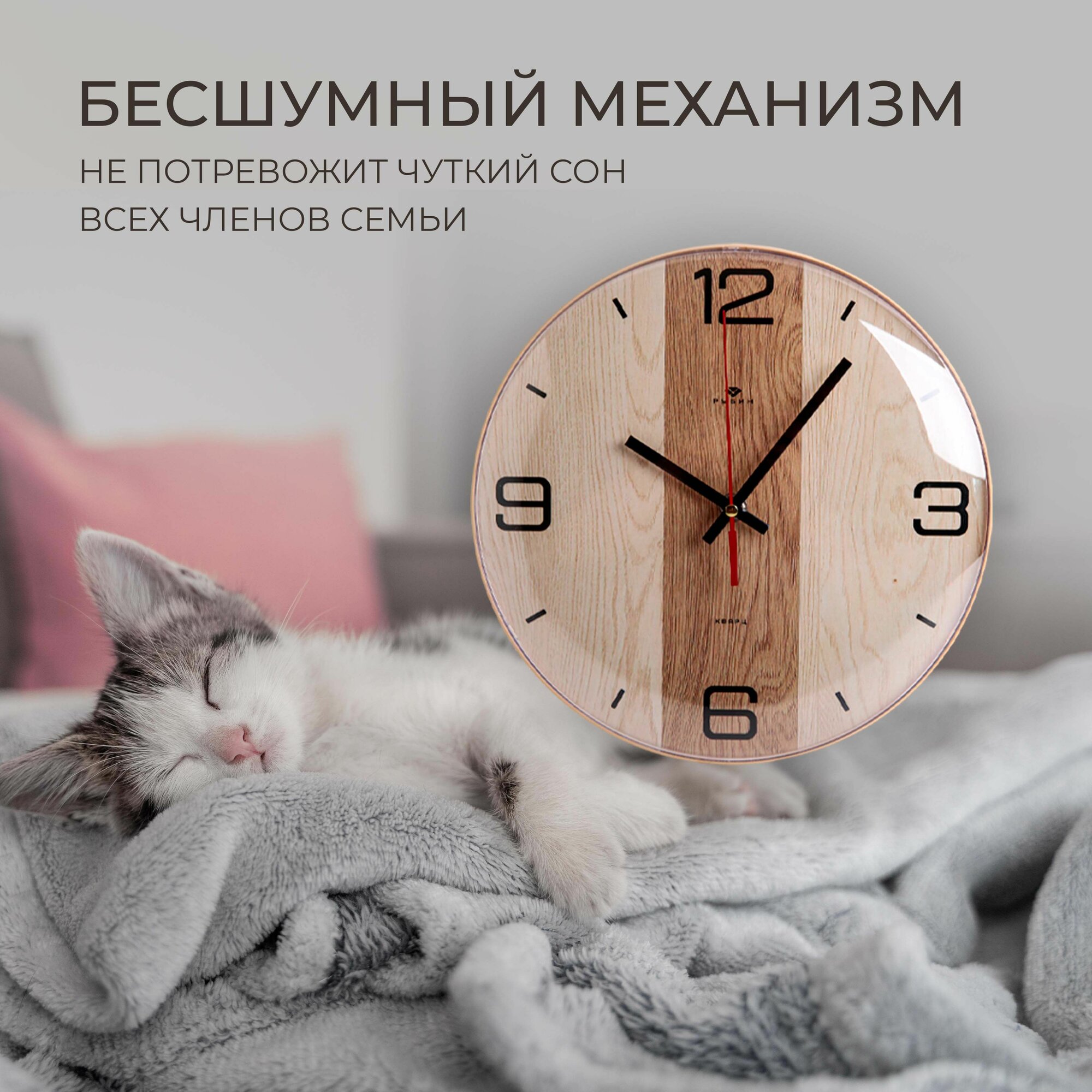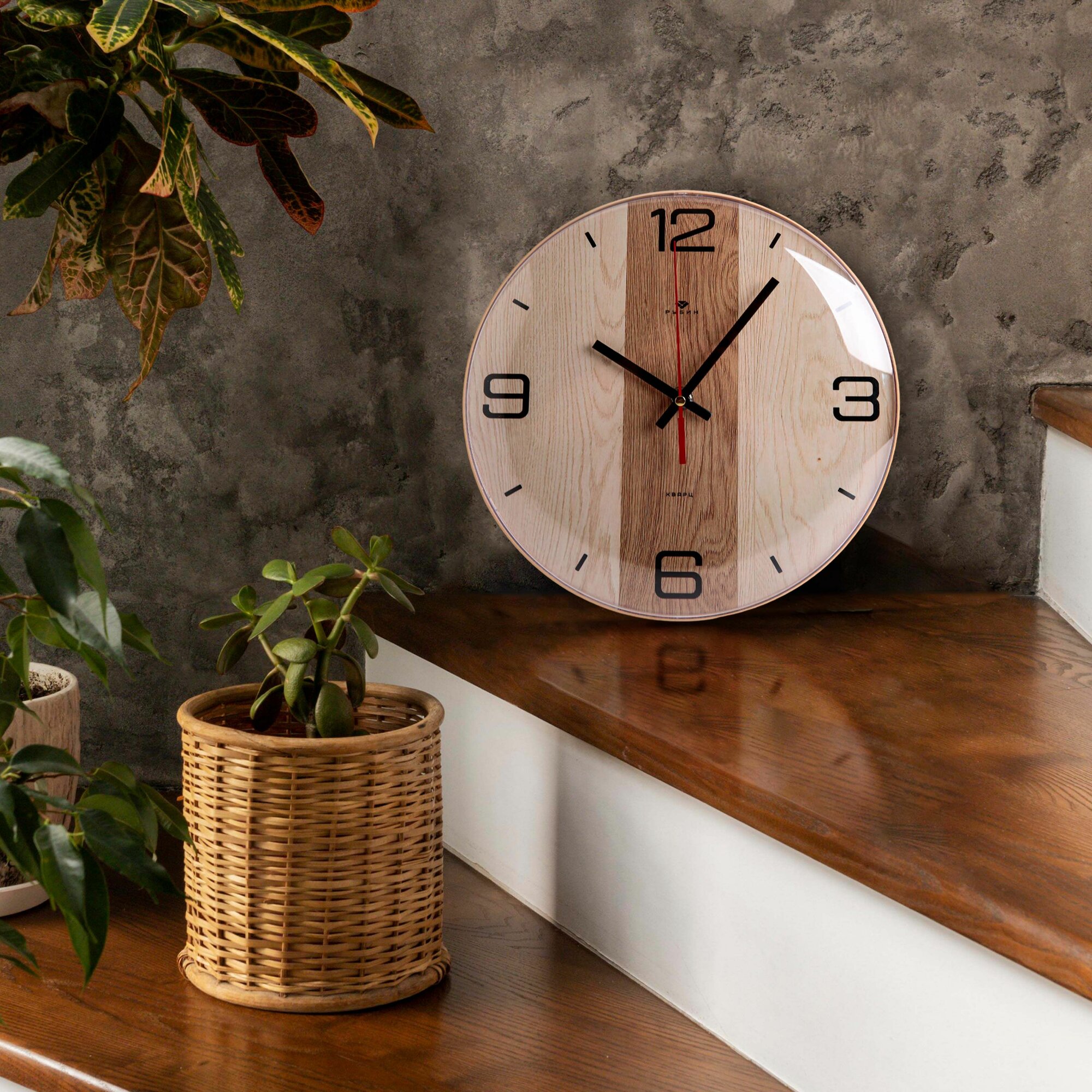 Часы настенные интерьерные "Рубин" круг d=25см, основание бежевое "Текстура дерева", кварцевый механизм