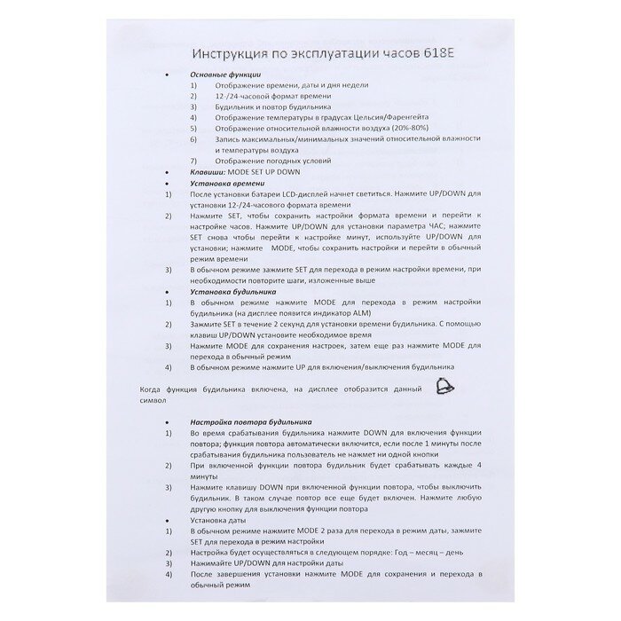 | Комплектация | Будильник 1 шт. |