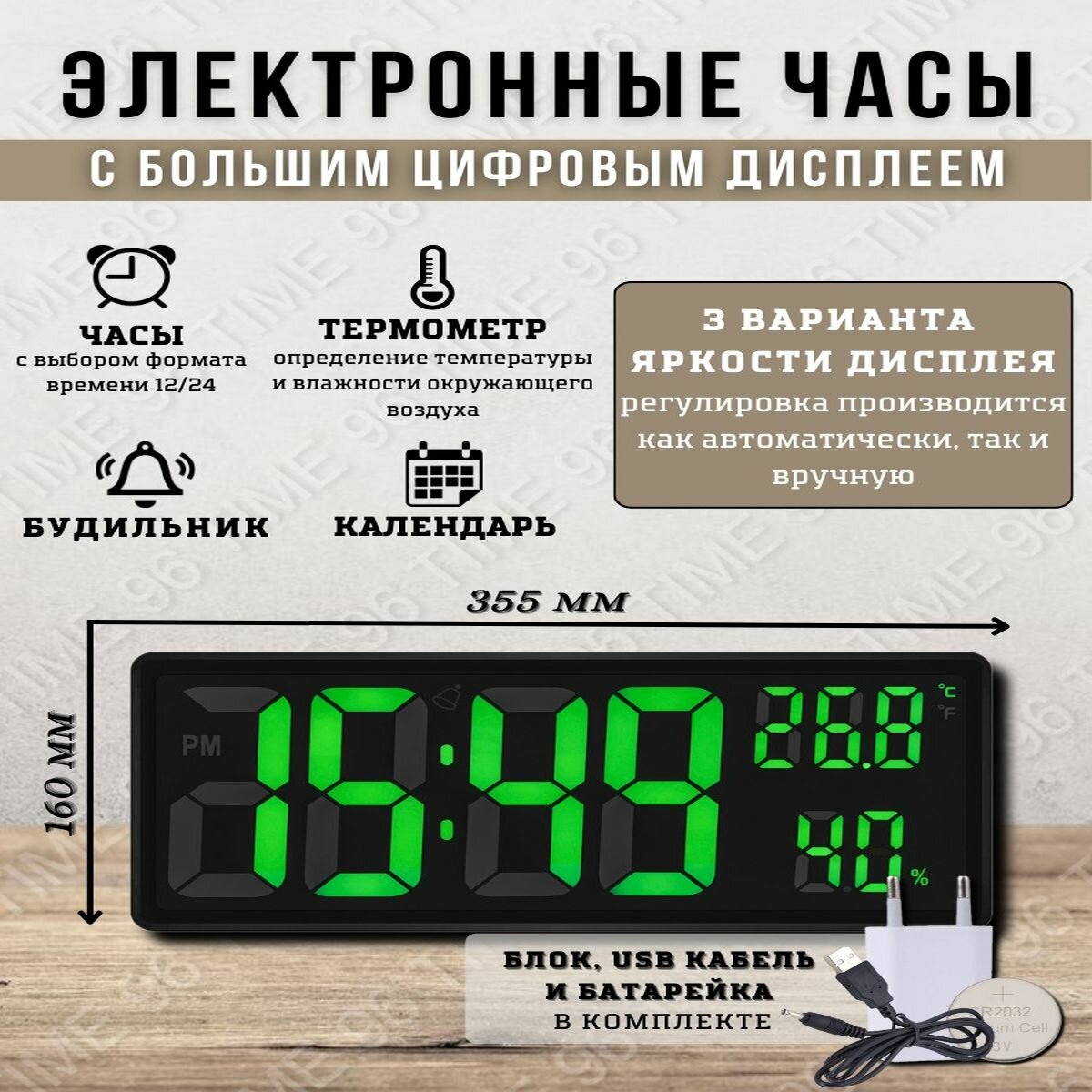 Настенные, настольные электронные часы c календарем, термометром, влажностью, будильником. интересное: