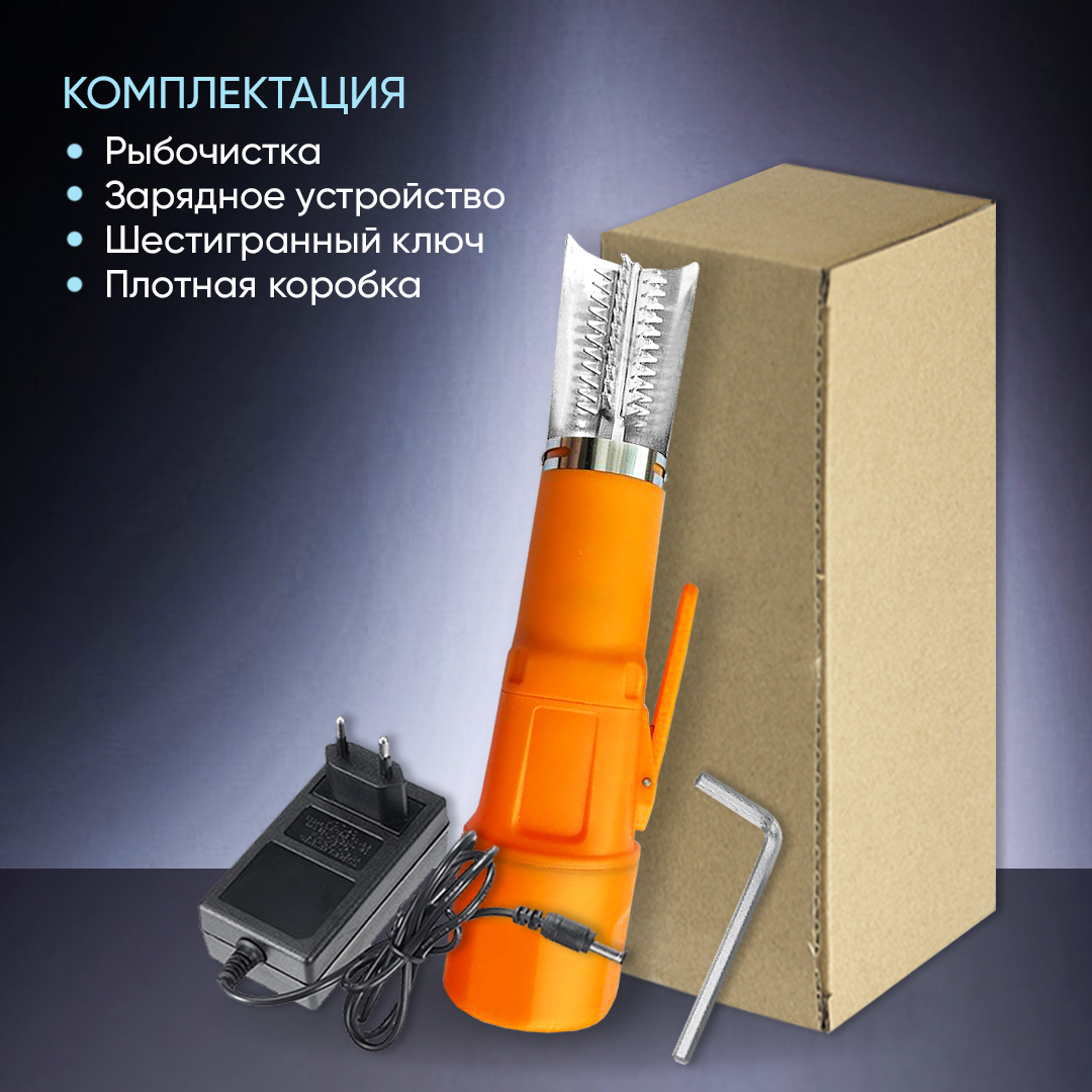 Купить Рыбочистка электрическая беспроводная с аккумулятором оранжевая
