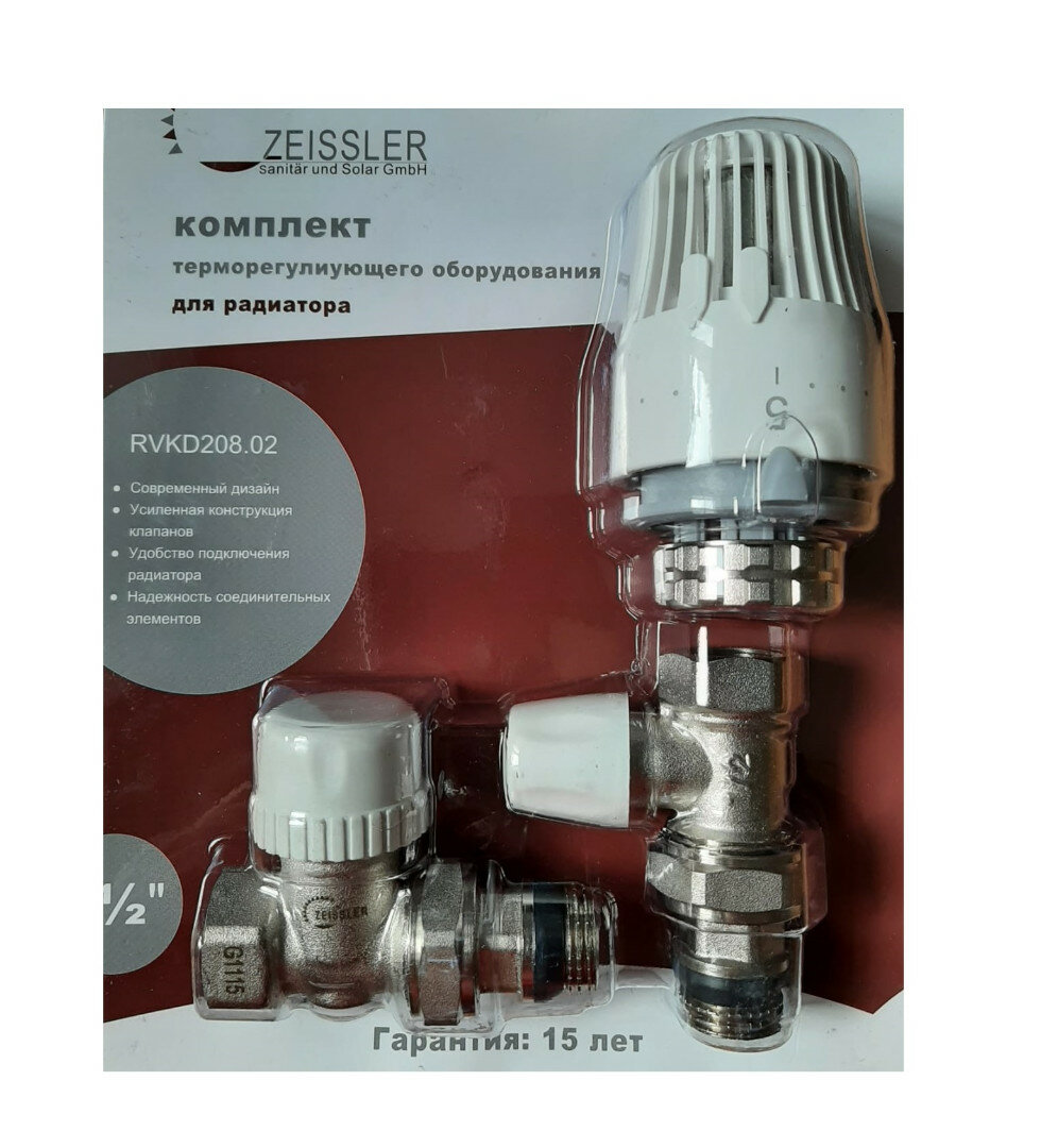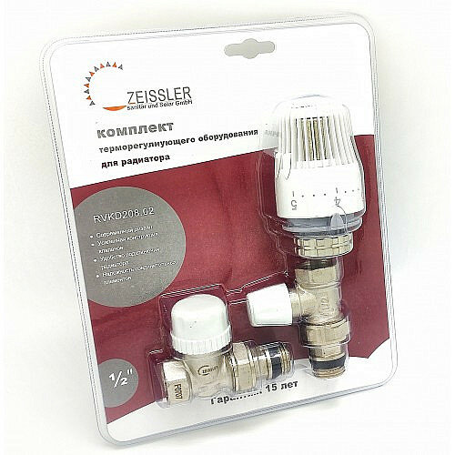 Комплект терморегулирующего оборудования для радиатора 1/2 прямой RVKD208.02 Zeissler