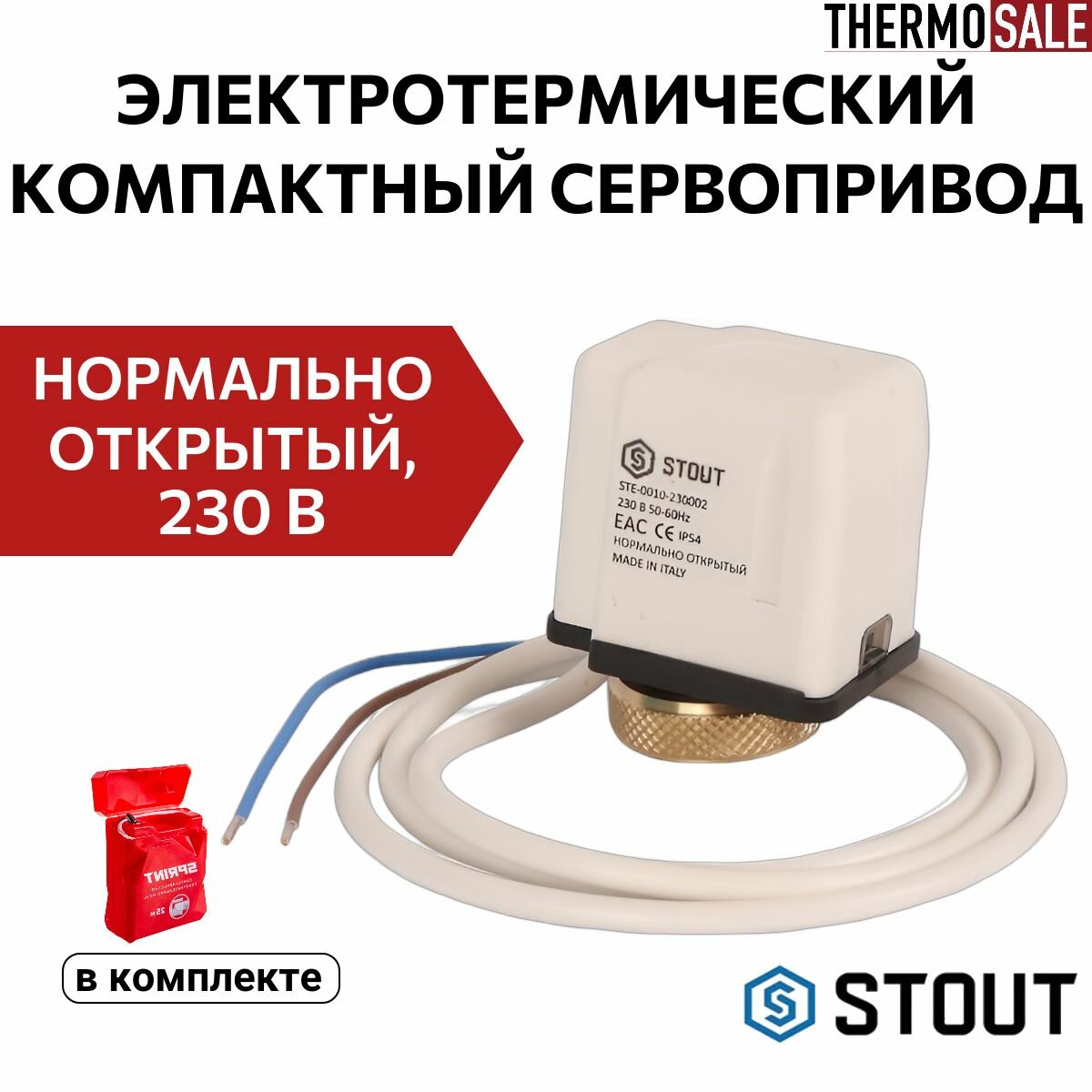 Электротермический компактный сервопривод Stout , нормально открытый, 230 В