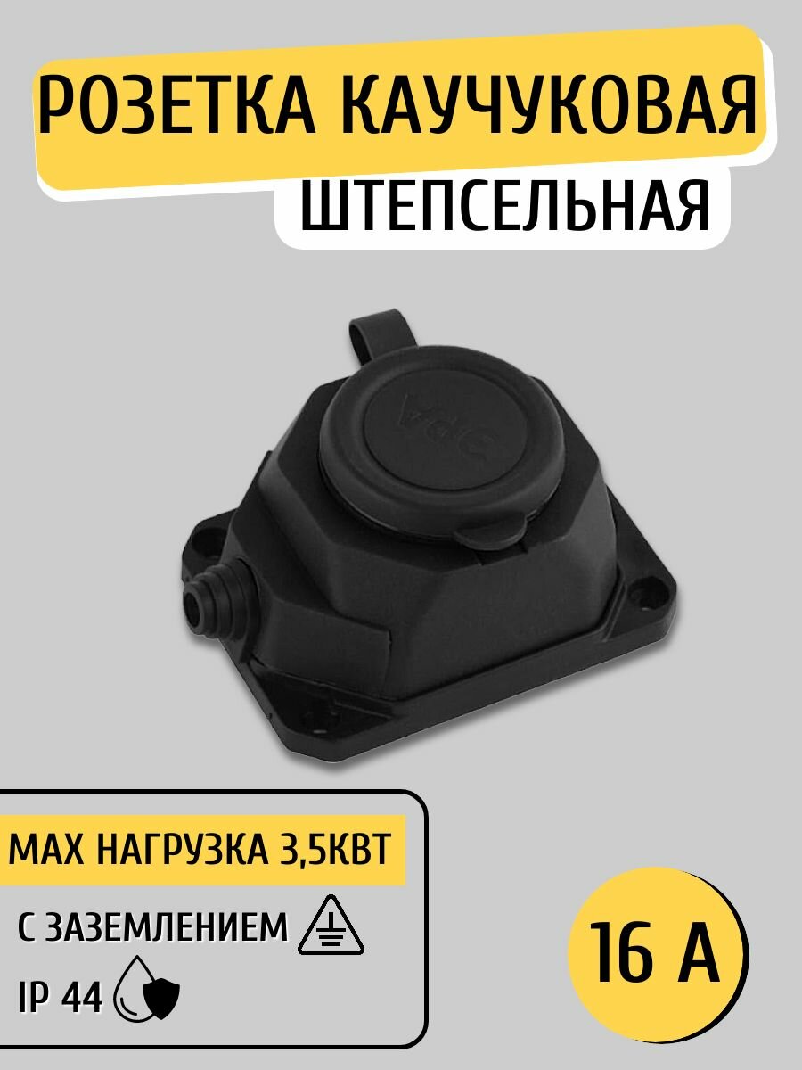 Купить Колодка K-1e-B-IP44 с заземлением 1 розетка черный 16А 3500 Вт