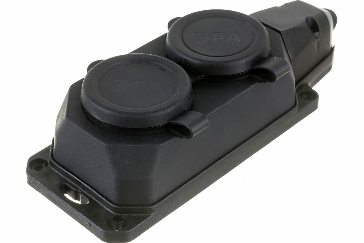 Купить Колодка розеточная электрическая каучуковая ЭРА K-2e-B-IP44 влагозащищенная на 2 розетки, 16А