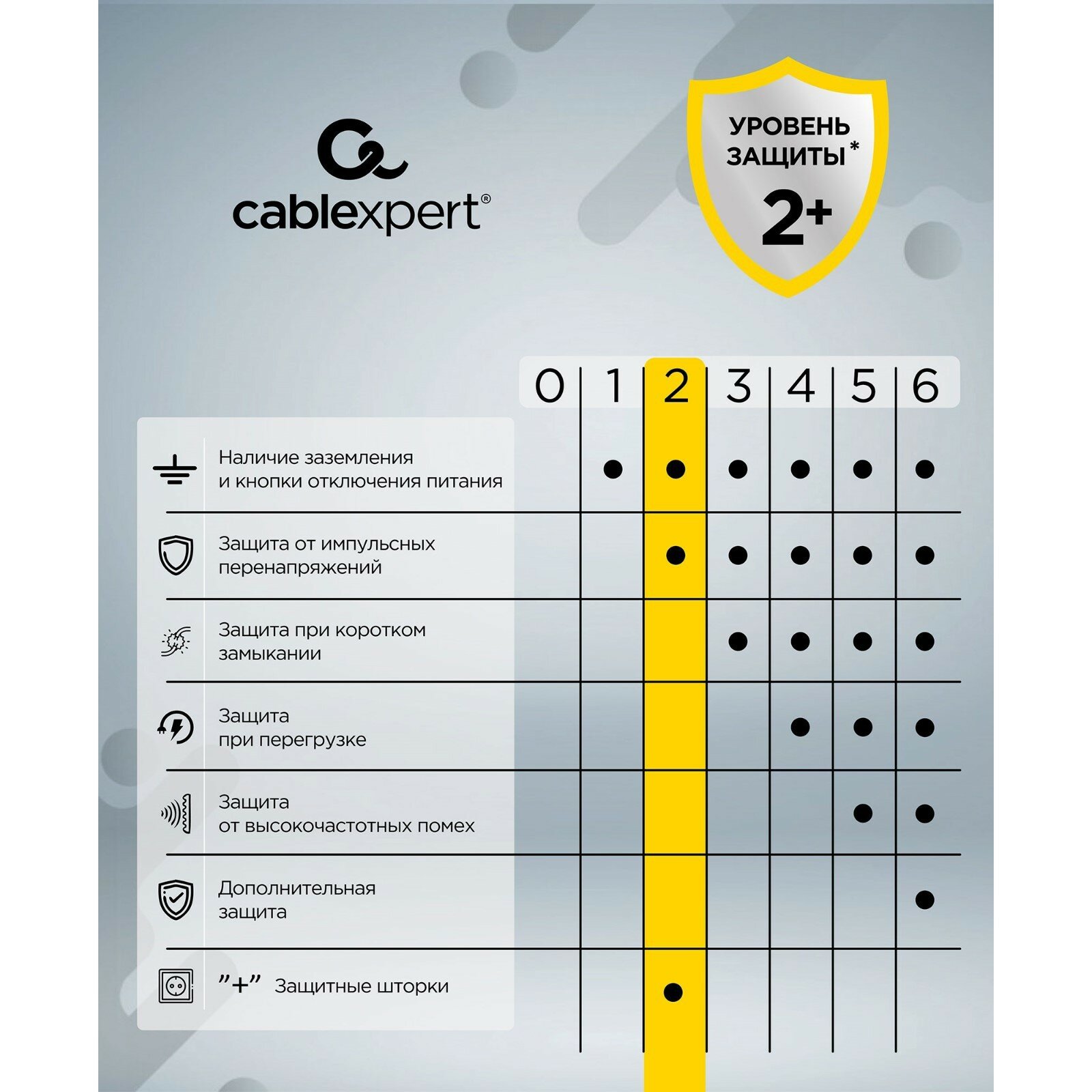 Сетевой фильтр Cablexpert Tower 4 розетки 10А 3xUSB 3.1А 2 метра уровень защиты 2+ черный