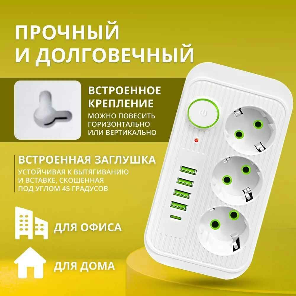 Сетевой фильтр удлинитель с USB и 3 розетками, белый 3 метра от Comfort_Zone интересное: