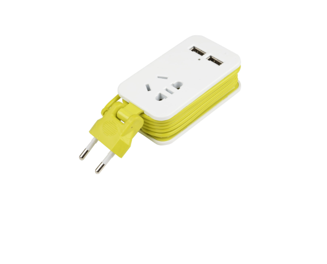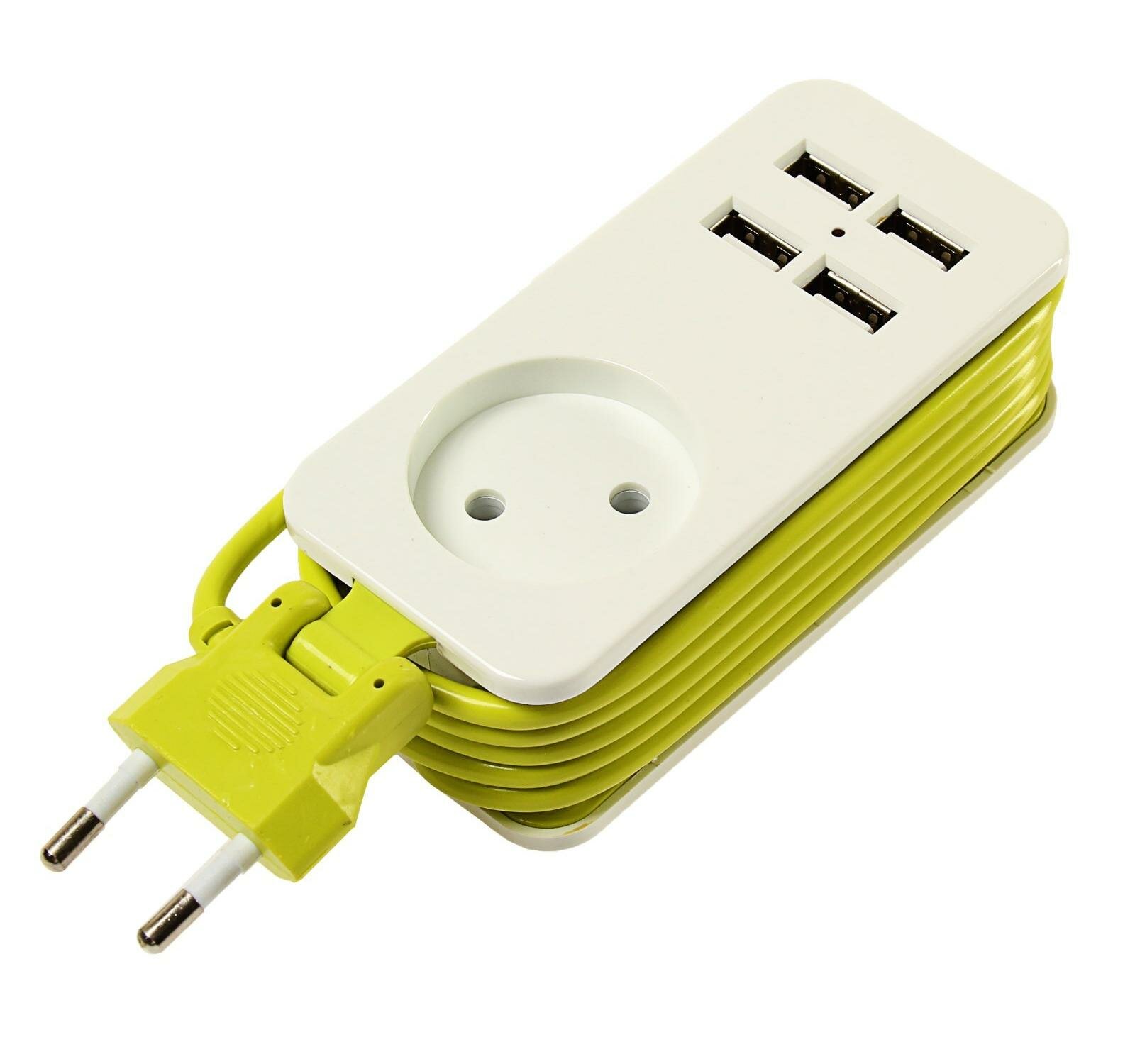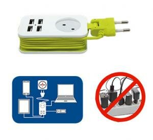 Удлинитель 1х1.5м без заземл. S-CT1-1.5U WHITE-GREEN Travel 4USB2.1A. бел. с салатовым
