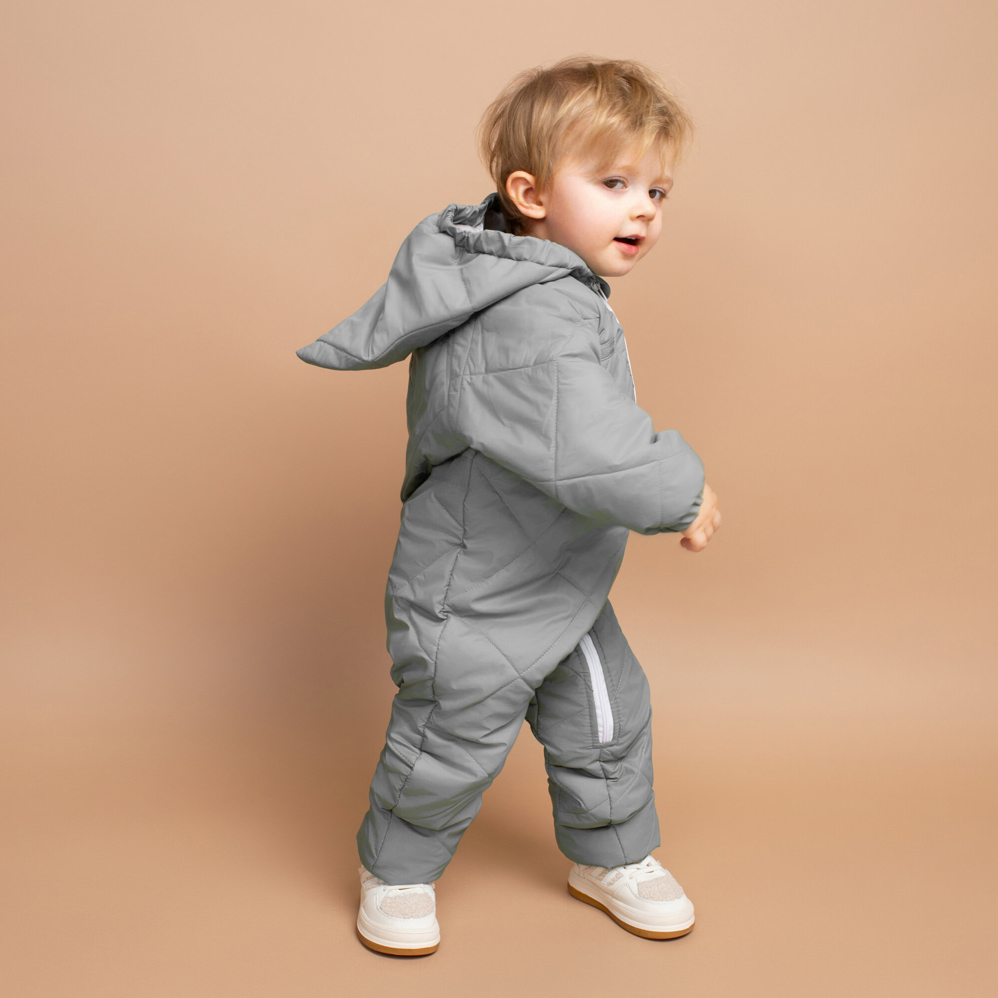 Комбинезон детский демисезонный стеганый с закрытыми ножками Amarobaby ELF, серый, размер 62
