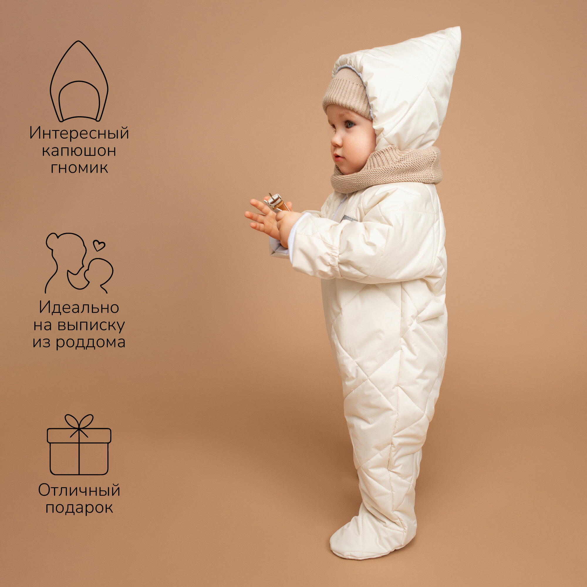 Комбинезон детский демисезонный стеганый с закрытыми ножками Amarobaby ELF, молочный, размер 62