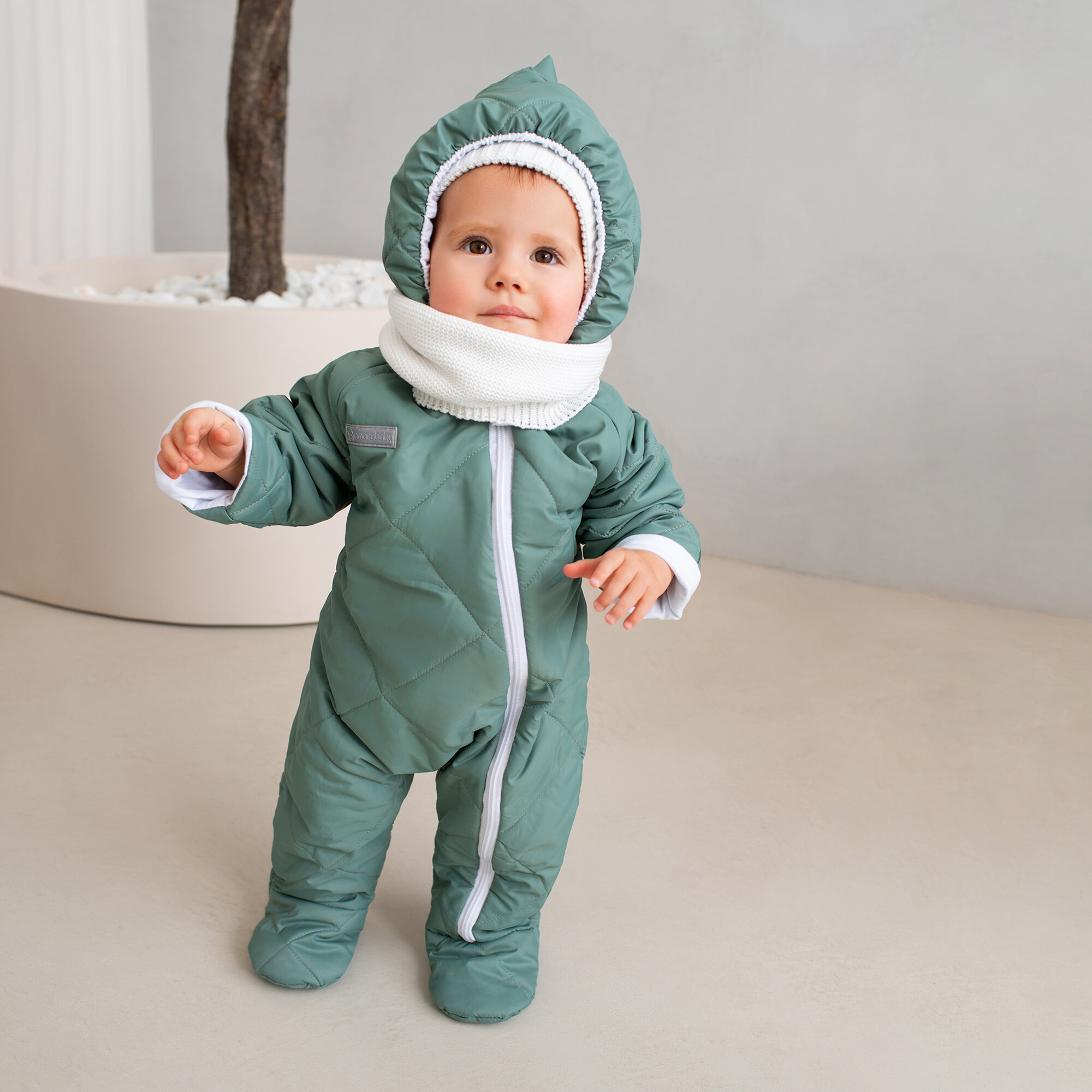 Комбинезон детский демисезонный стеганый с закрытыми ножками Amarobaby ELF, мятный, размер 74