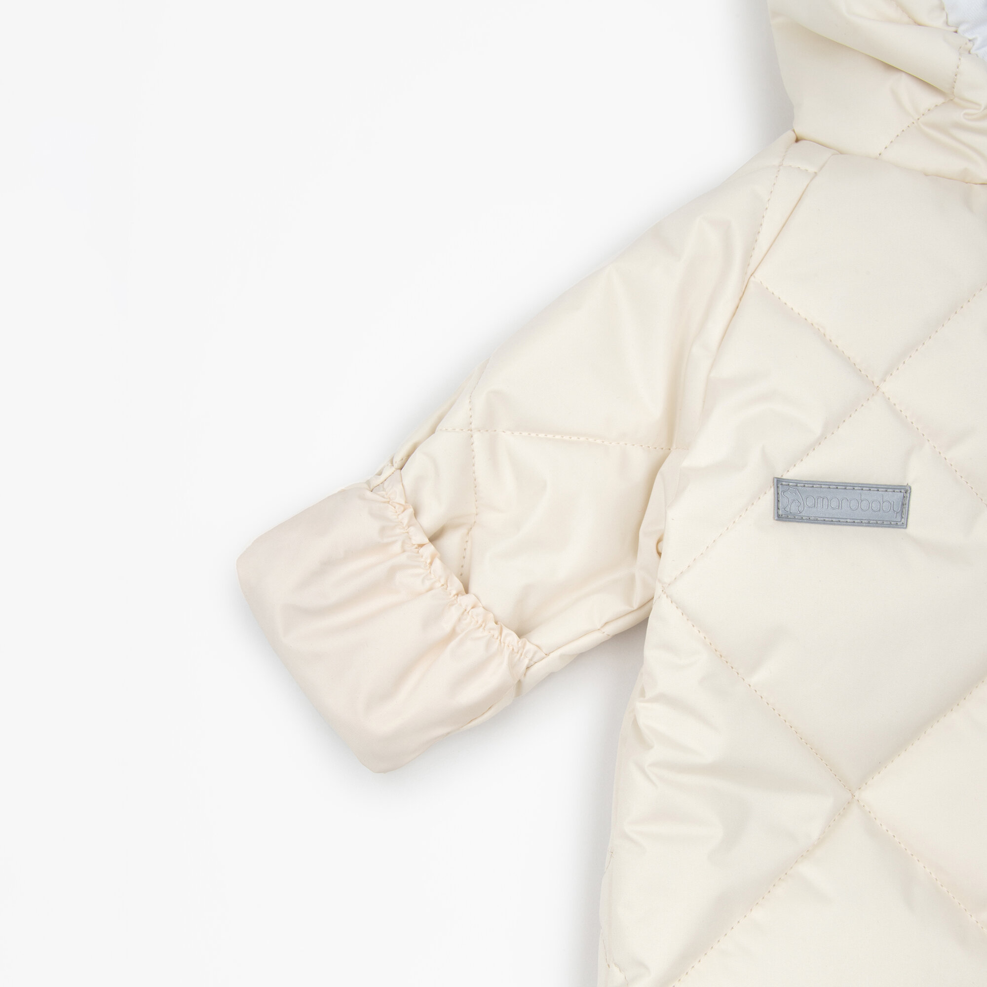 Комбинезон детский демисезонный стеганый с закрытыми ножками Amarobaby ELF, молочный, размер 74