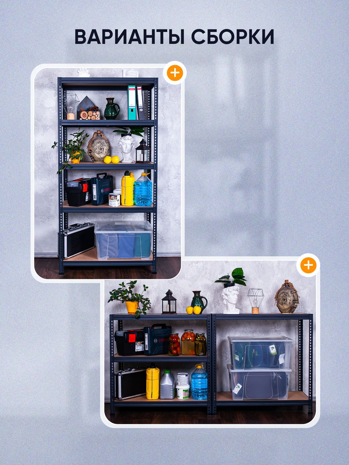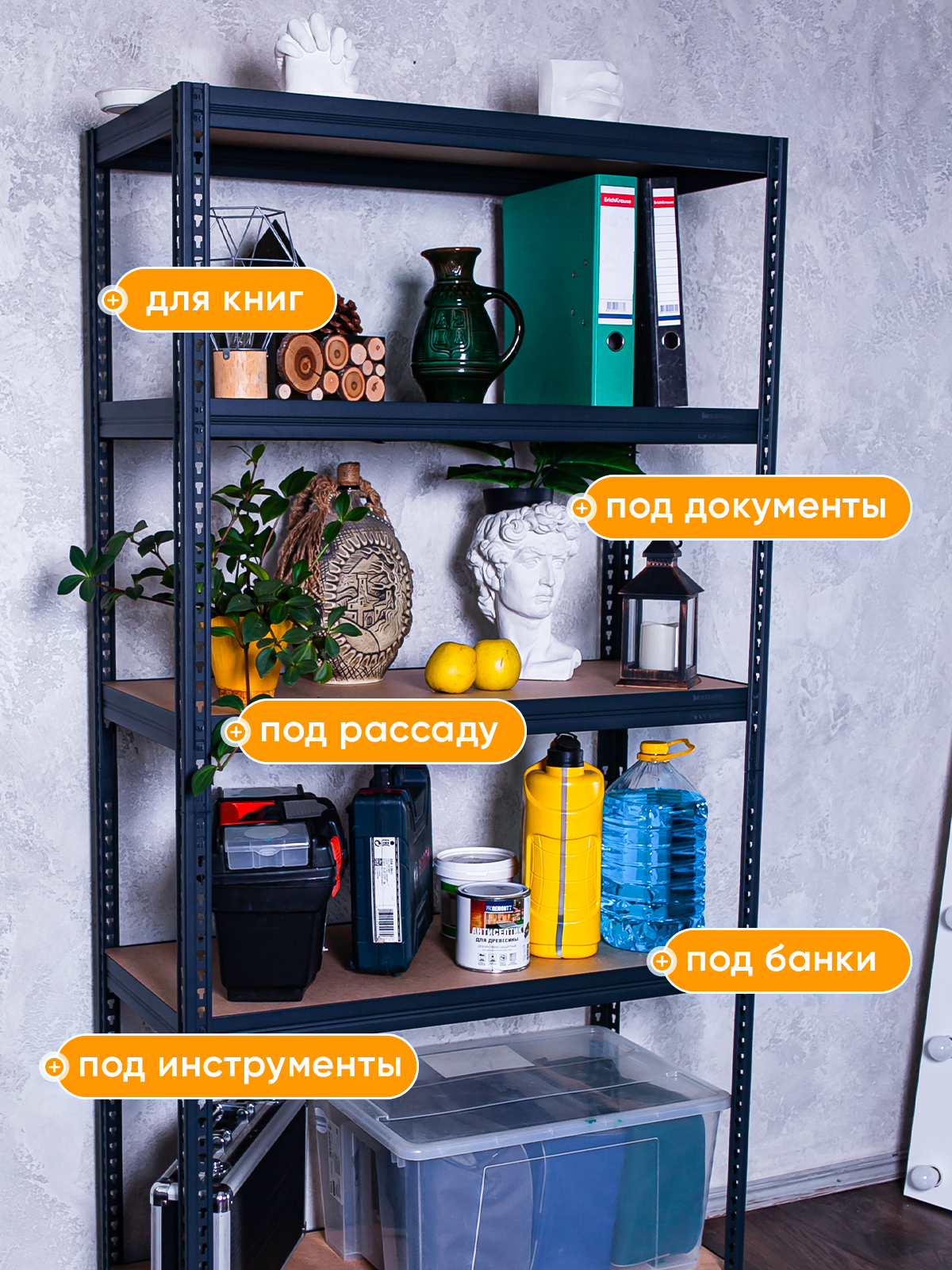 Стеллаж для хранения, регулируемый по периметру, черный