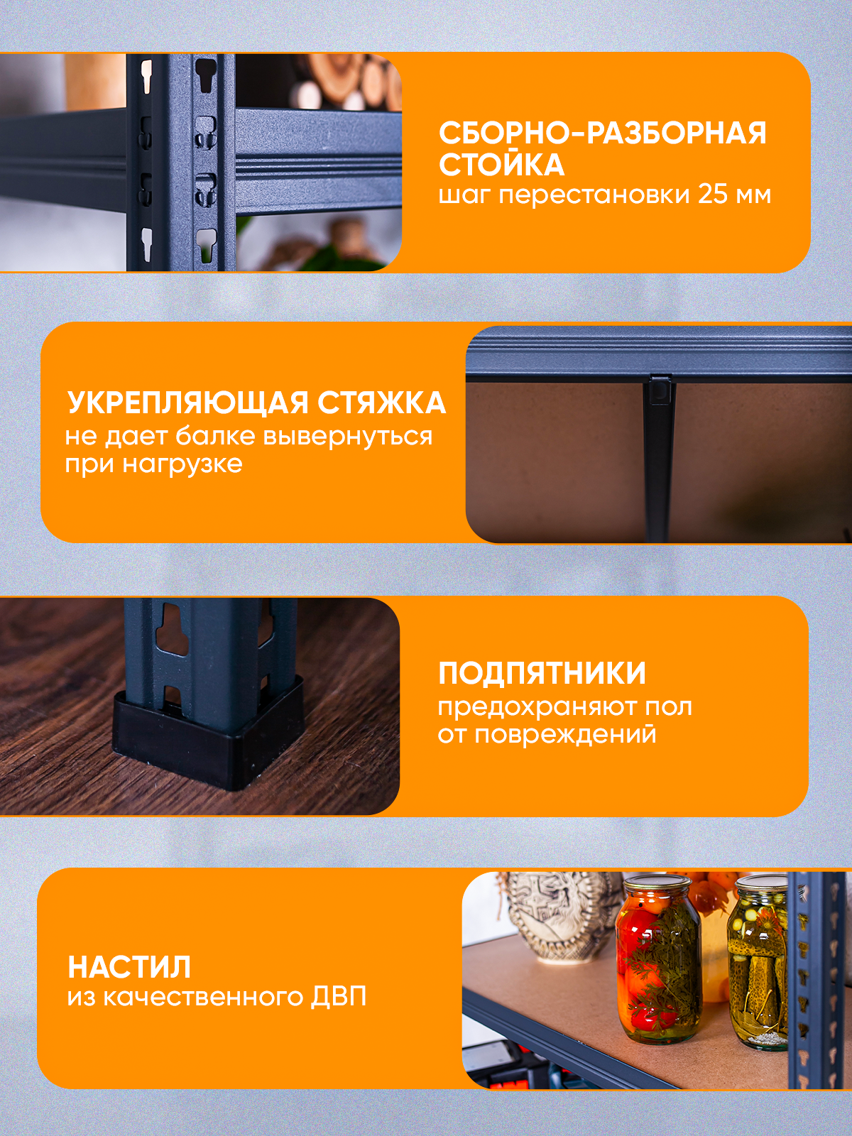 | Допустимая нагрузка на стеллаж | 750 кг |