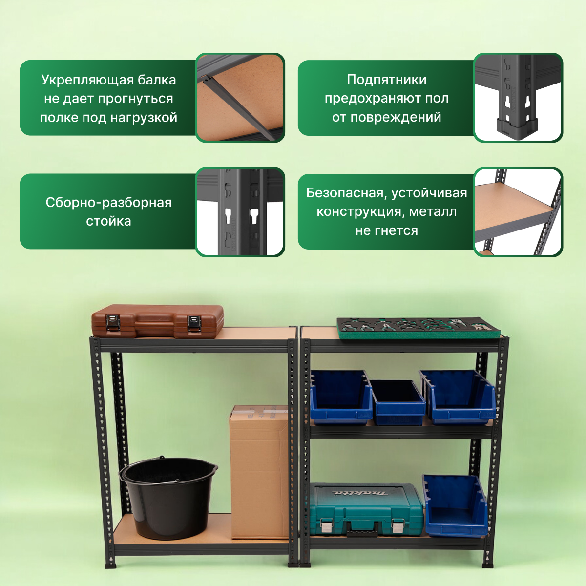 | Допустимая нагрузка на стеллаж | 750 кг |