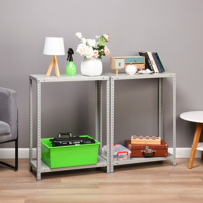 Стеллаж металлический 4 полки Практик LES 15KD 145x75x30 см цвет серый нагрузка на полку 30 кг