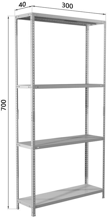 Стеллаж металлический практик "MS KD", сборная стойка, 1850х700х300 мм, 4 полки (MS 185/70х30/4)