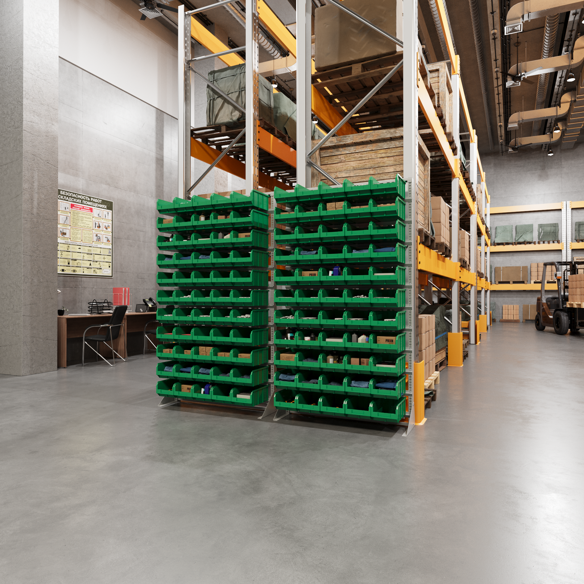 | Дополнительная информация | cтойка под пластиковые ящики 1150х2000 мм; опора стойки односторонняя - 2 шт.; держатель для стойки 1150 мм - 12 шт.; пластиковый ящик 234х149х120 мм - 84 шт.; |
