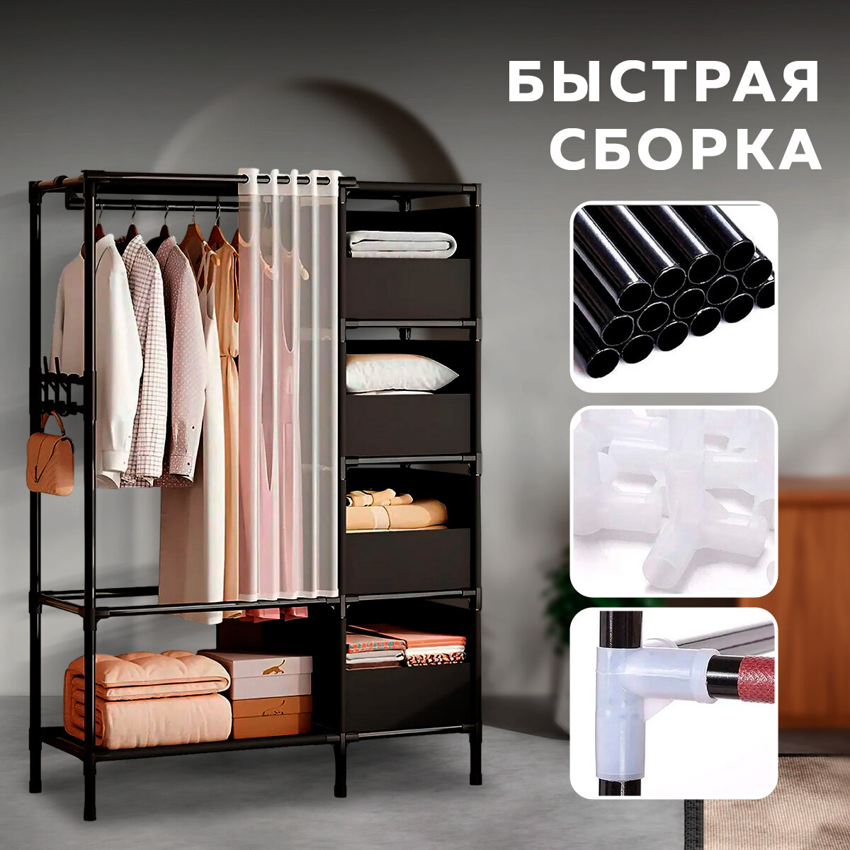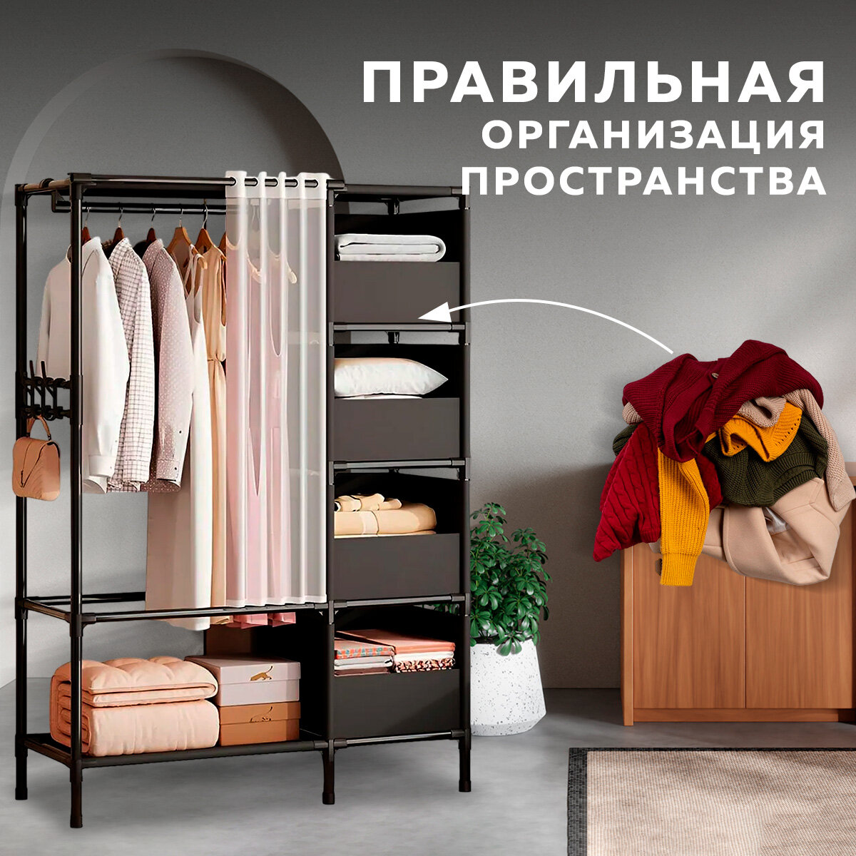 Вешалка напольная Ridberg Black, с закрытыми полками и шторкой, черная, нагрузка до 40кг