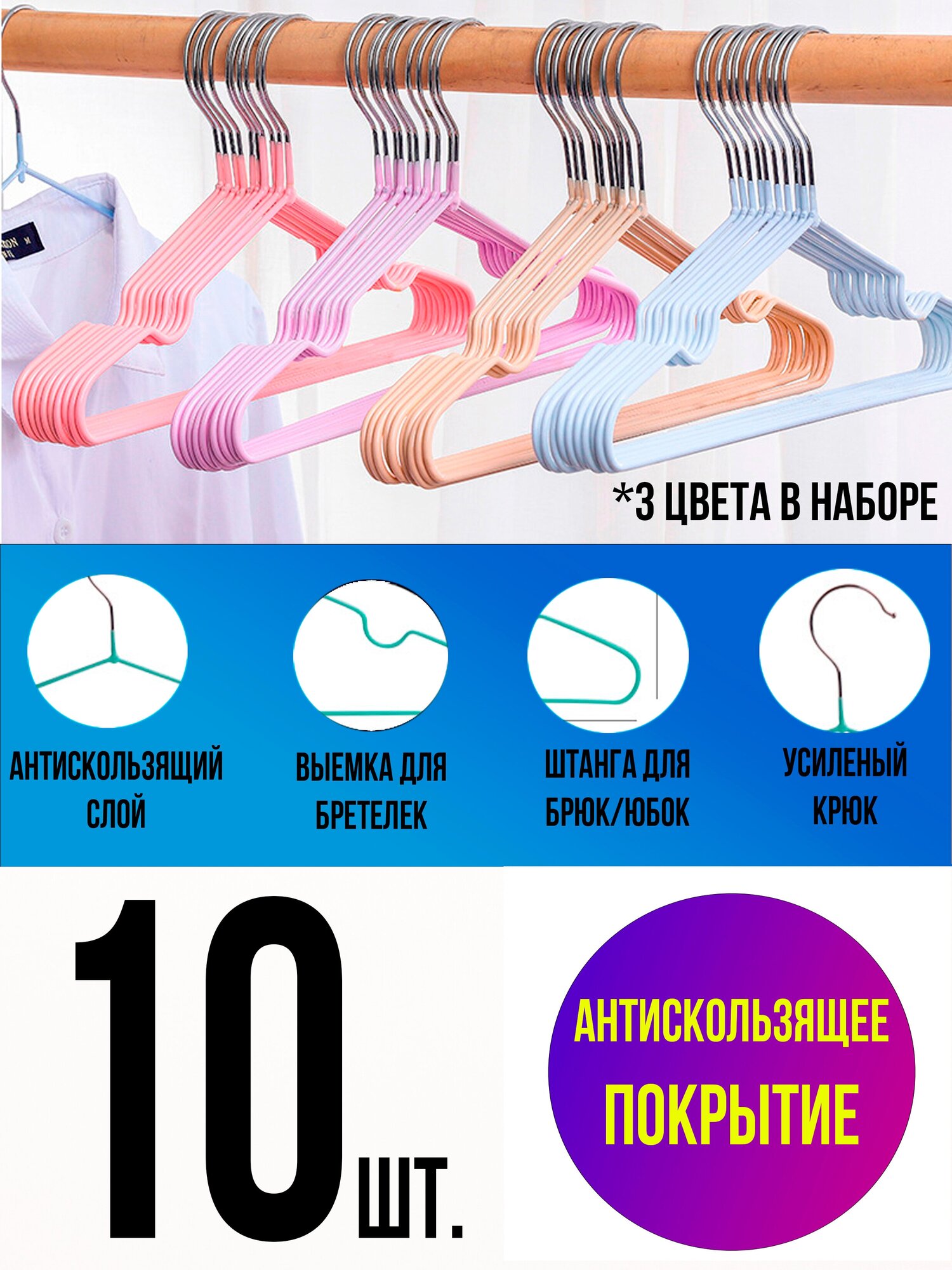 Вешалка-плечики для одежды с противоскользящим покрытием, белые 10 шт