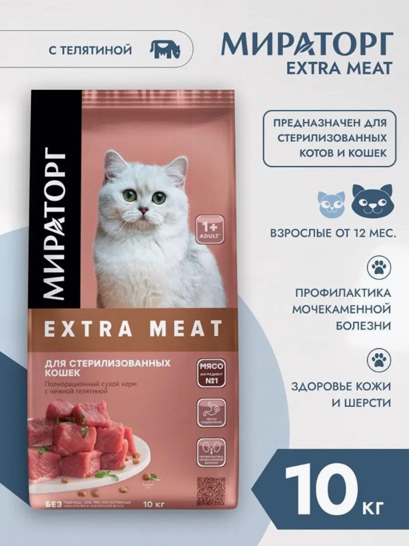 Сухой корм Мираторг Extra Meat для стерилизованных кошек, с телятиной, 10кг