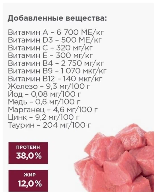 | Дополнительная информация | Сочетание Омега-6 и цинка способствует здоровью кожи и красоте шерсти питомца. |