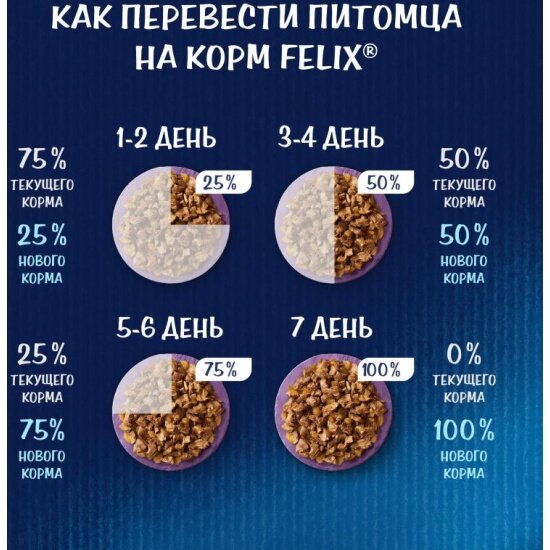 | Дозировка | для взрослой кошки среднего веса (4 кг) требуется примерно 3-4 пакетика в день, кормление желательно разделить на два приема; для беременных или кормящих кошек кормление без ограничений |