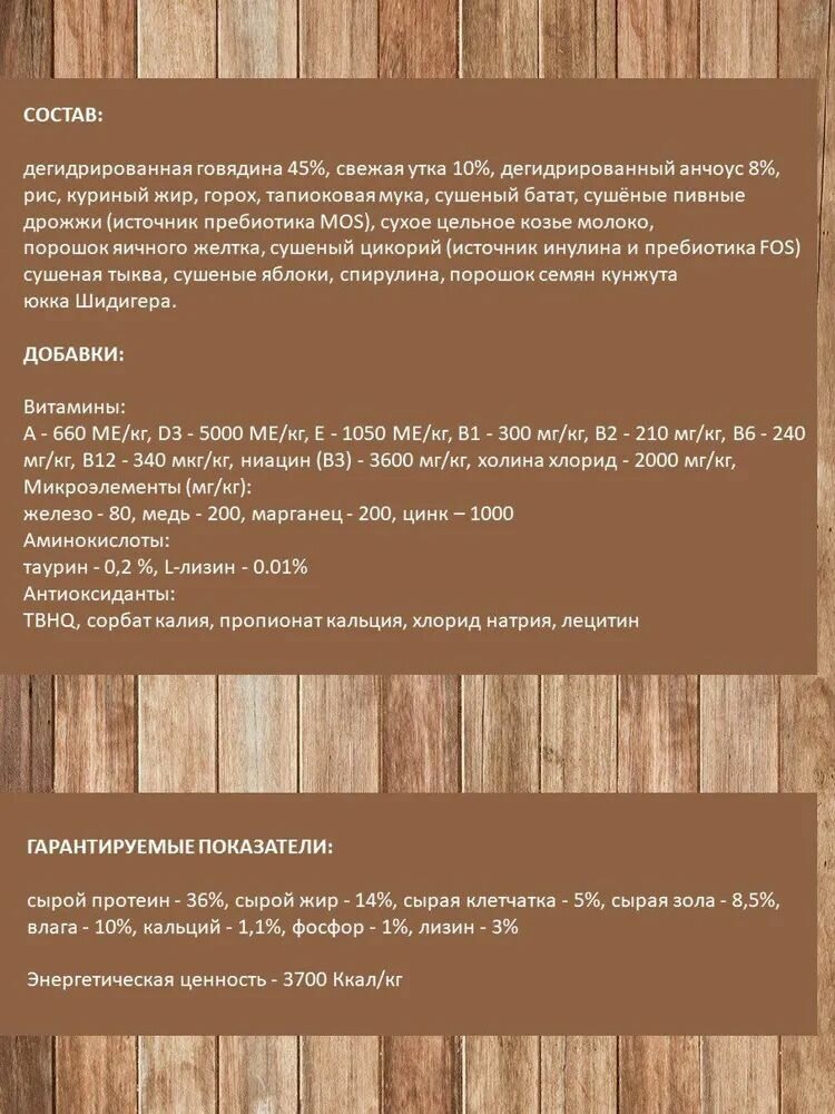 | Энергетическая ценность | 3740 Ккал/кг |