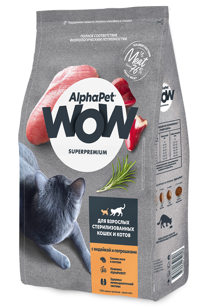 Корм AlphaPet WOW Superpremium для стерилизованных кошек и котов, c индейкой и потрошками, 1.5 кг
