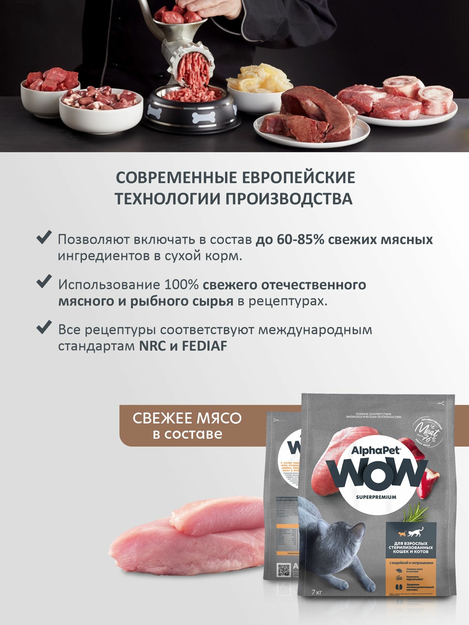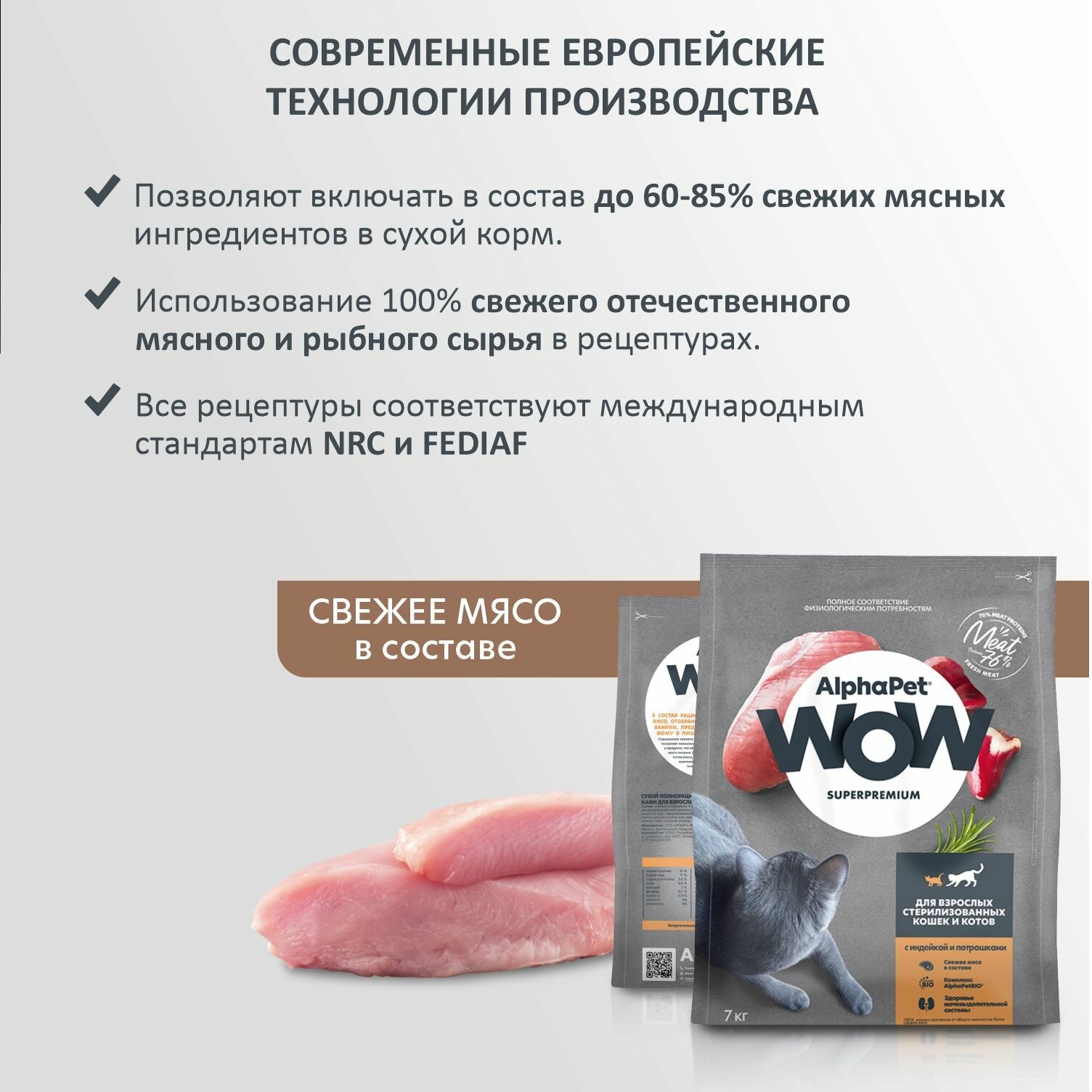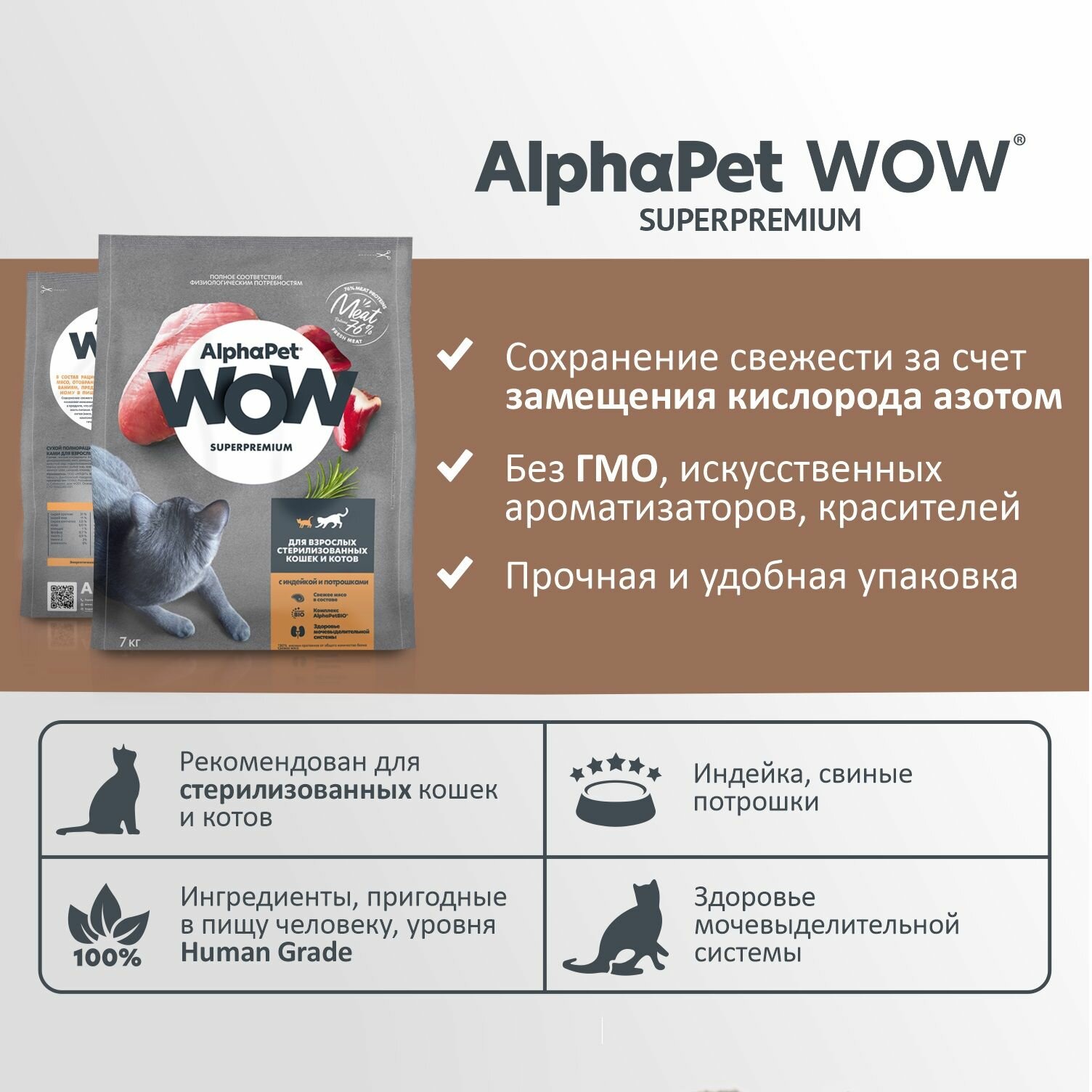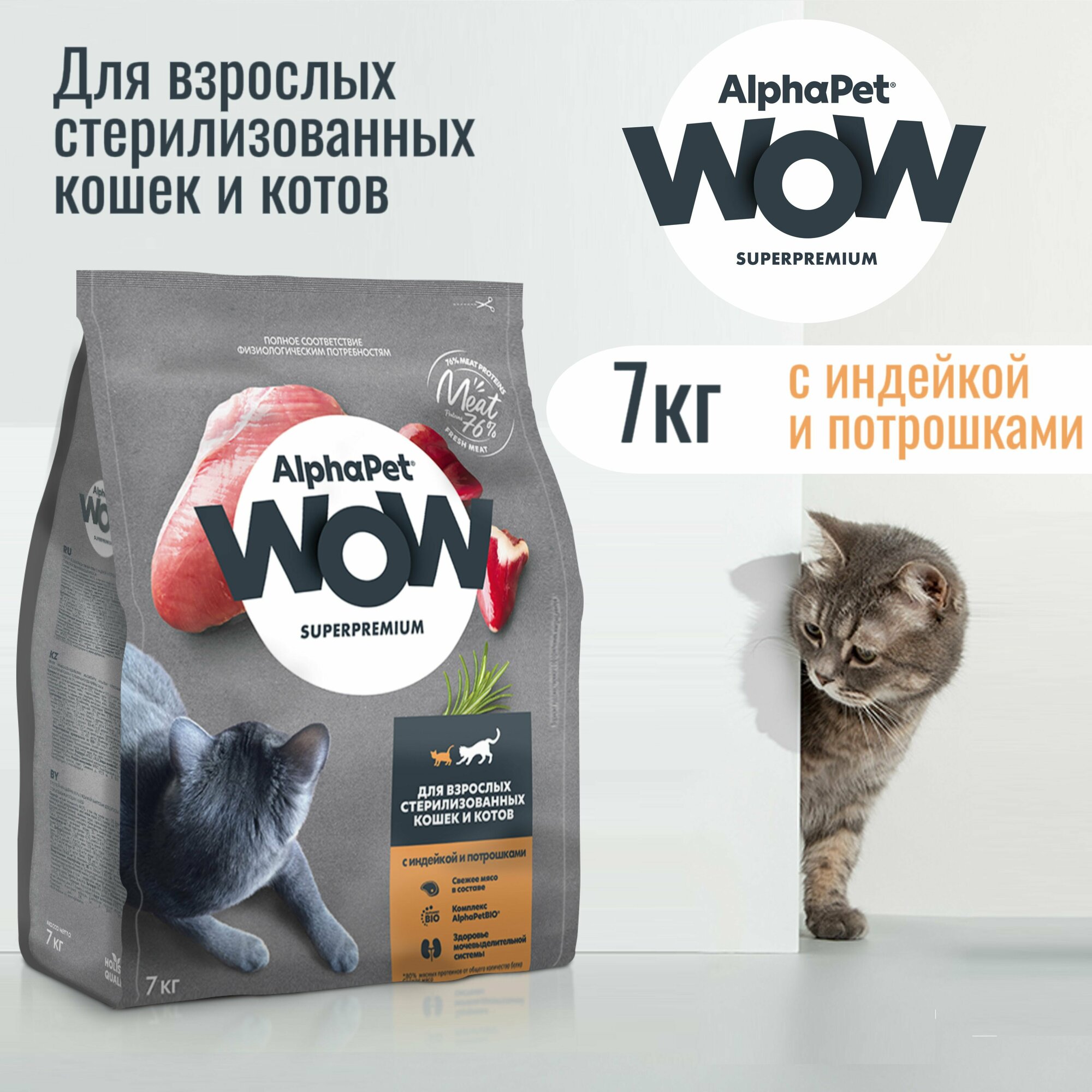 ALPHAPET WOW Superpremium Сухой корм с индейкой и потрошками для взрослых стерилизованных кошек, 7 кг Дефект упаковки без потери веса